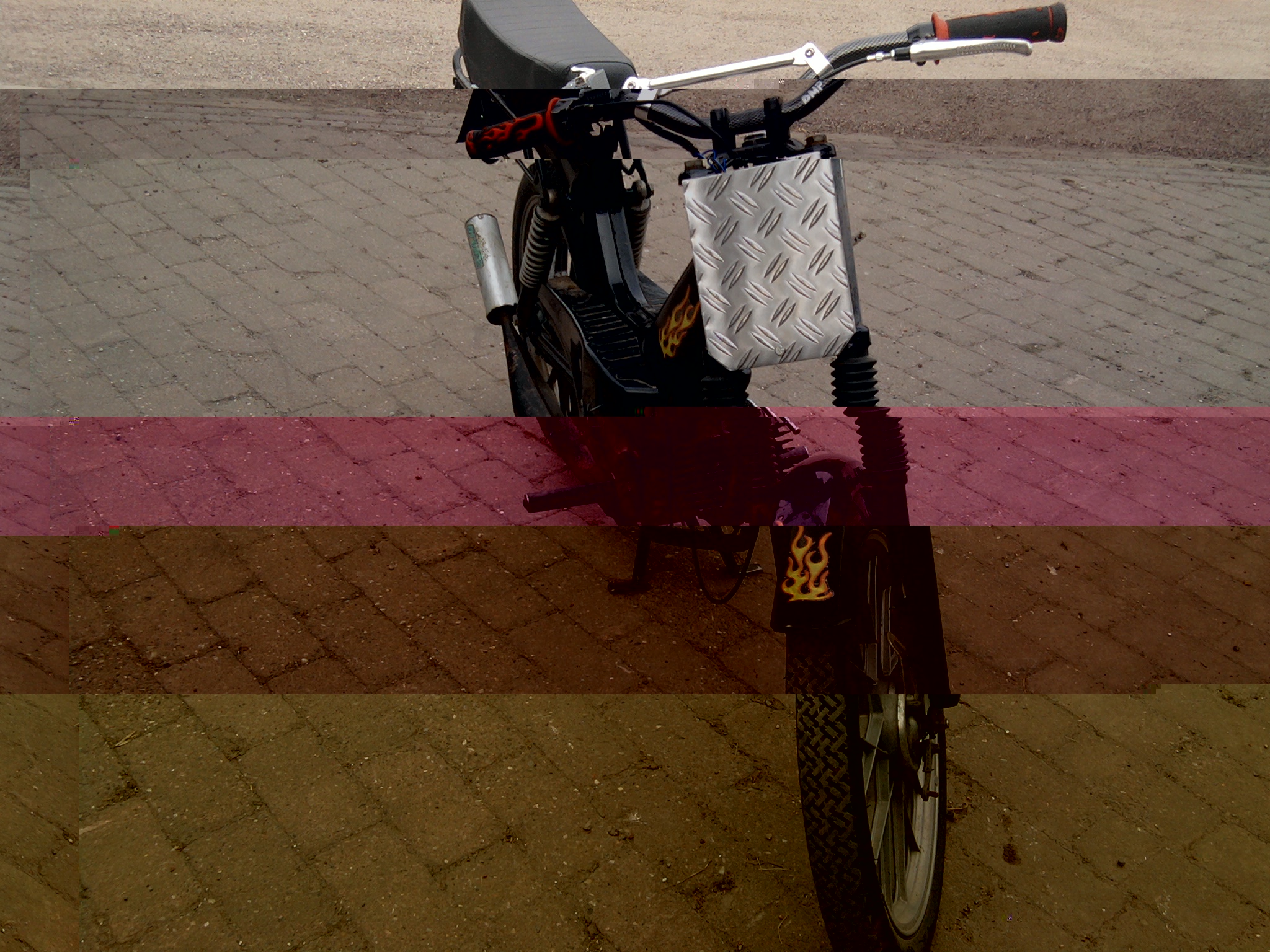 maar die vlammen stickers gaan eraf en er komen Stage6 of Malossi stickers op ofzo. want die stikkers laten al los als er een beetje benzine over heen komt!!