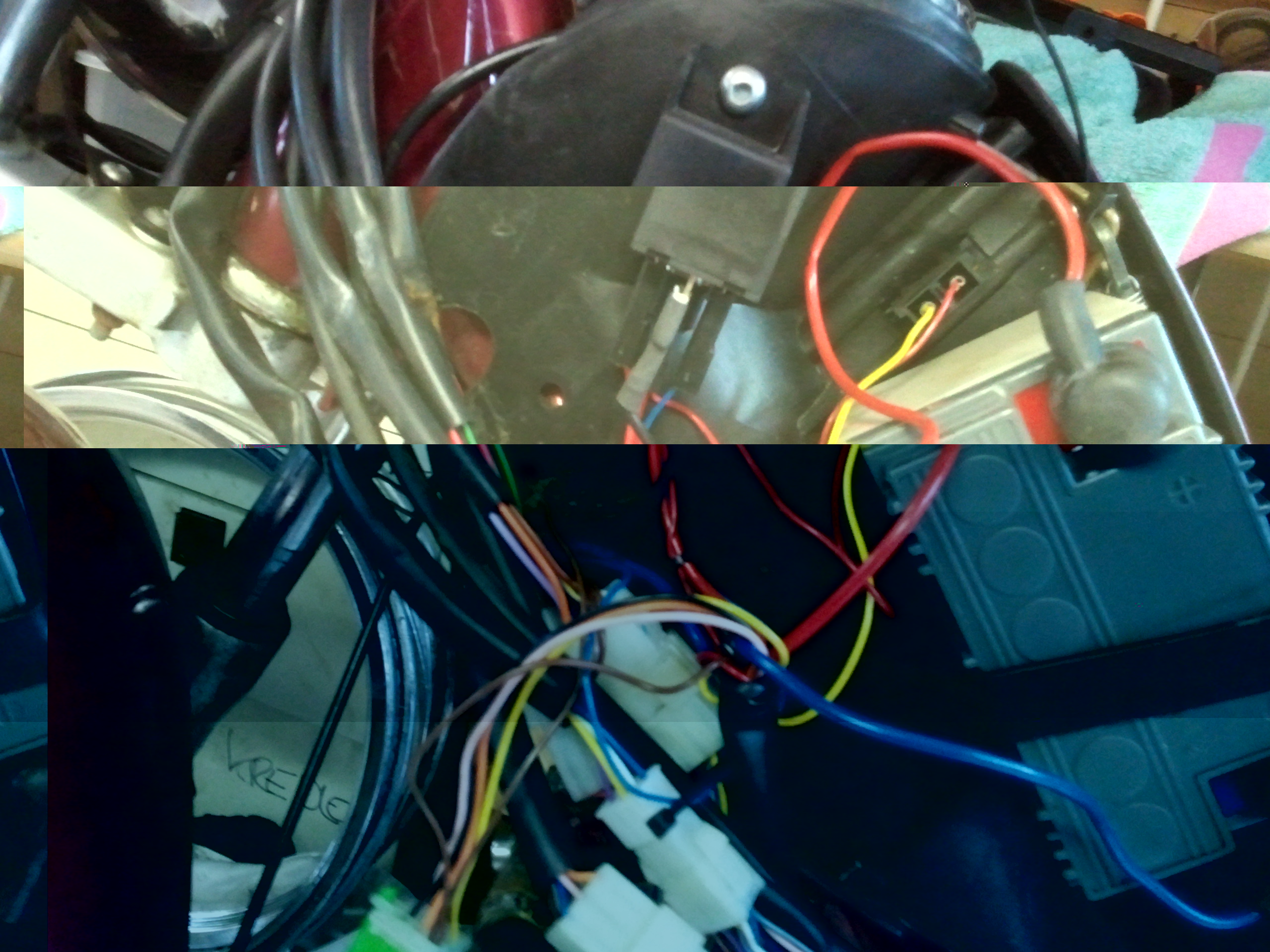 Nog steeds niet. Als ik hem goed verbind doet 'ie het niet en als ik de rode draadjes doorverbind wel.. contactslot werkt wel want het heeft invloed op toeter en licht..