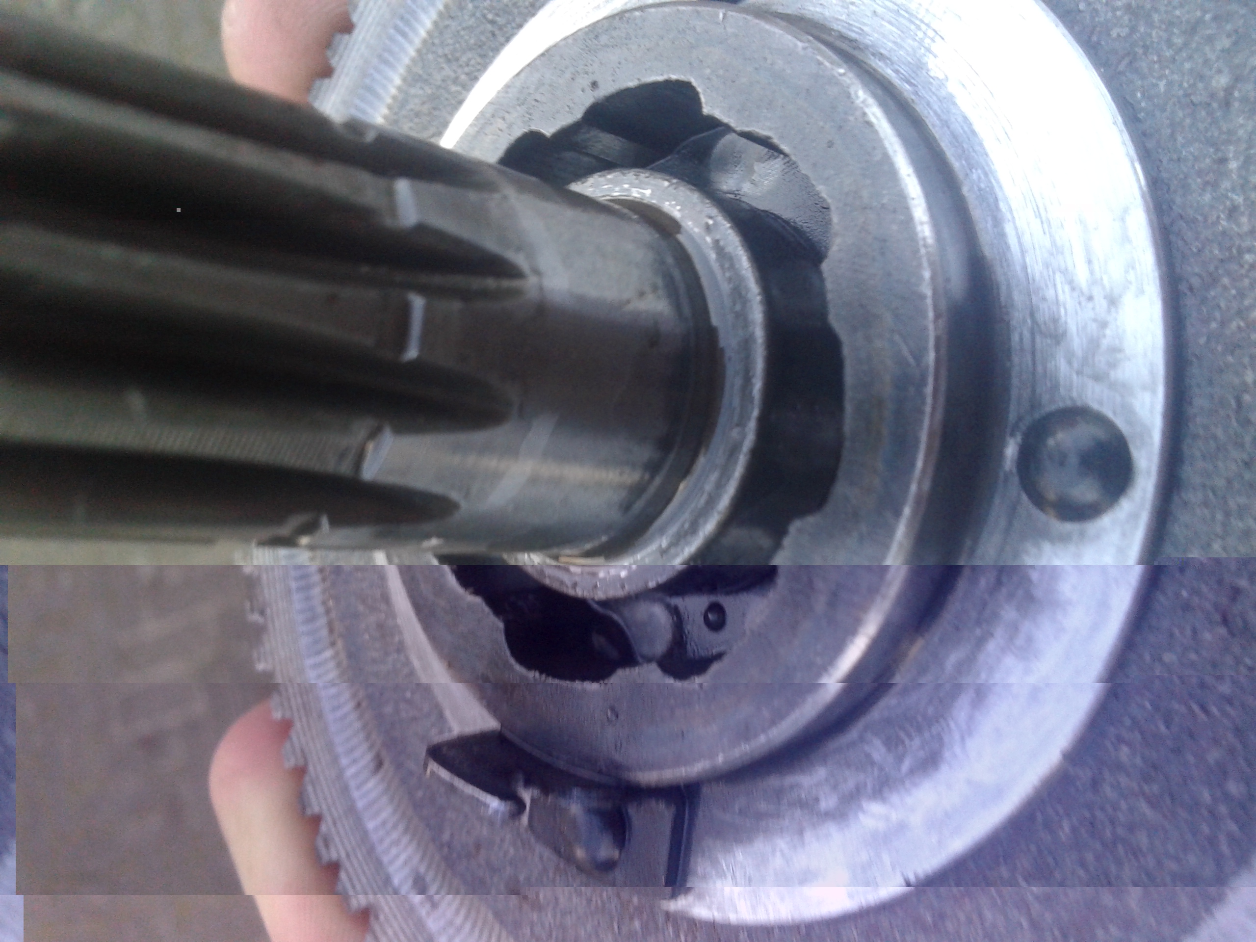 Ik heb de foto's eens in detail bekeken. Ik vind, zo vanaf de foto's te beoordelen, de innesteling nog meevallen maar dat kan ik ook mis hebben en door het perspectief misleid worden. Voel eens met je nagel of je een "randje" hebt (aan de hoge kant van het loopvlak = kleinste opening tussen kooi en as) daar waar de rollen contact maken met de kooi. Dit verhinderd het rolletje om helemaal goed te kunnen klemmen en het weerstandvrij werken van de vrijloopkoppeling. Je hoeft echt geen mm 's af te slijpen, alleen dat randje glad maken. En de kooi positie loopt taps toe naar de as, dus als het rolletje dan iets verder contact maakt is geen bezwaar.
