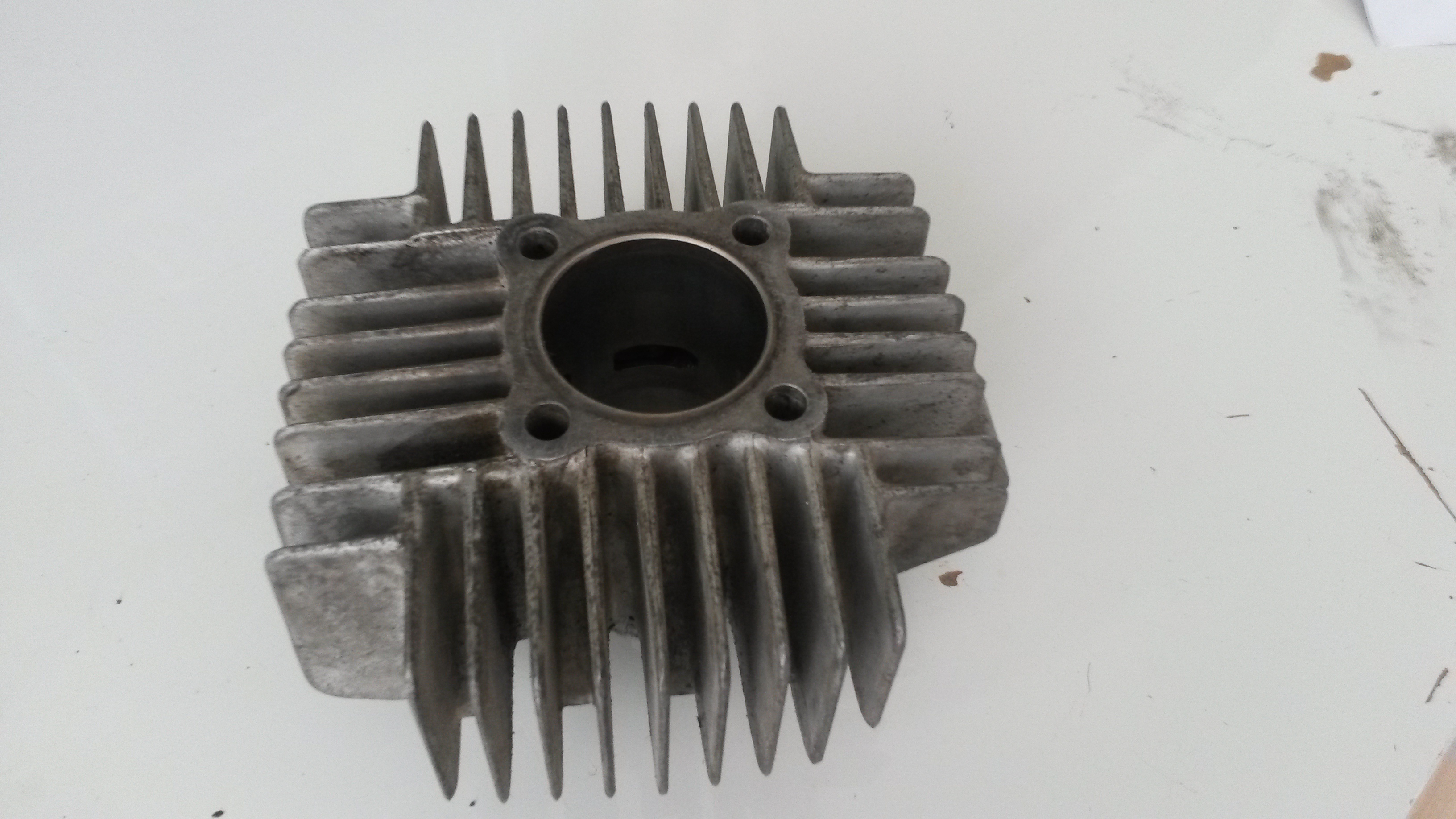 De kop is een bromkop en is afgevlakt. Alleen wel balen dat ze daarbij een slijptol hebben gebruikt. :roll: Dus binnenkort ff checken of hij wel recht is. Als ik klaar ben met het maken van mn straalkast, ga ik de kop ff stralen.