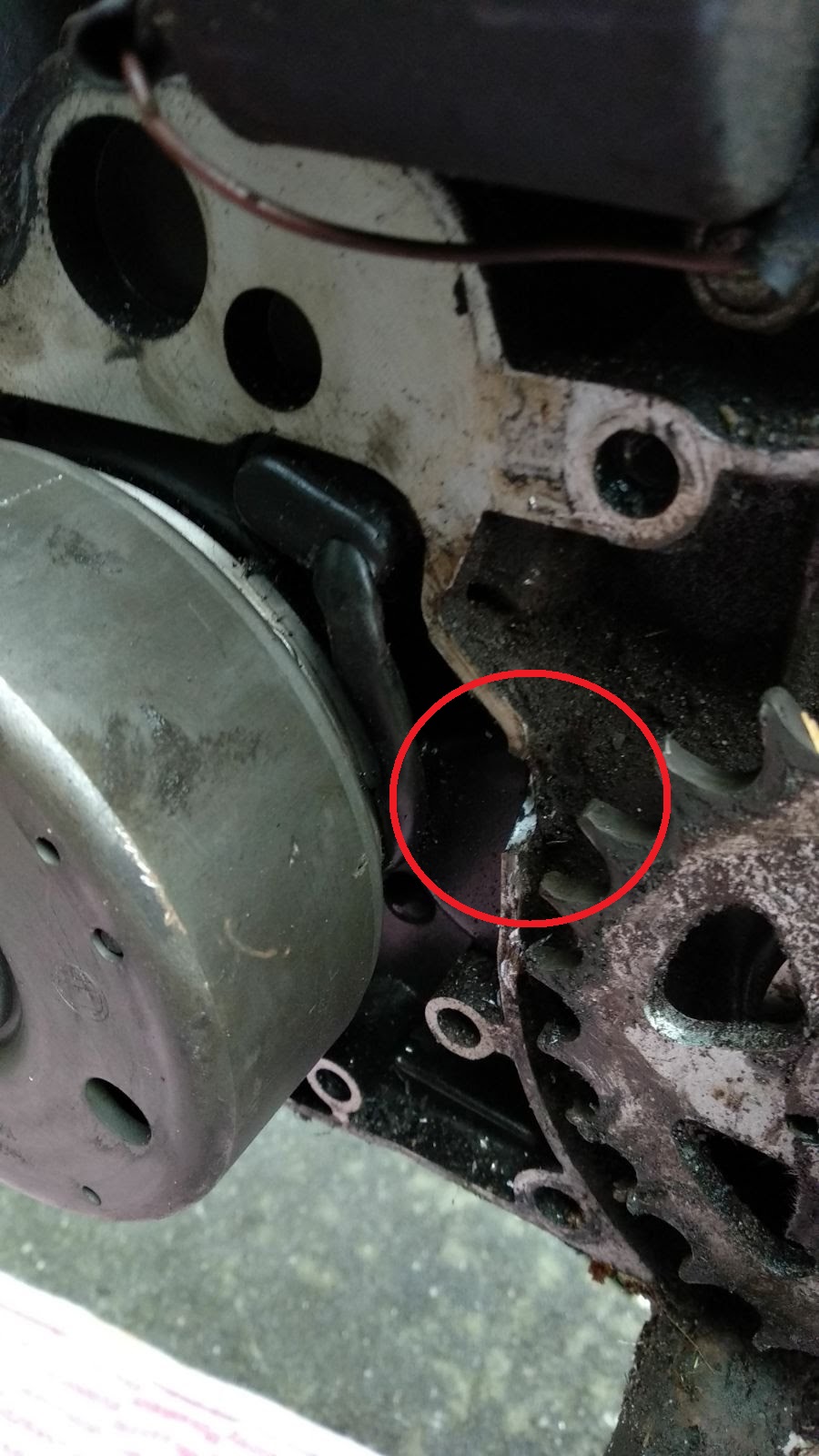 Gat in kickstart / vliegwiel deksel
