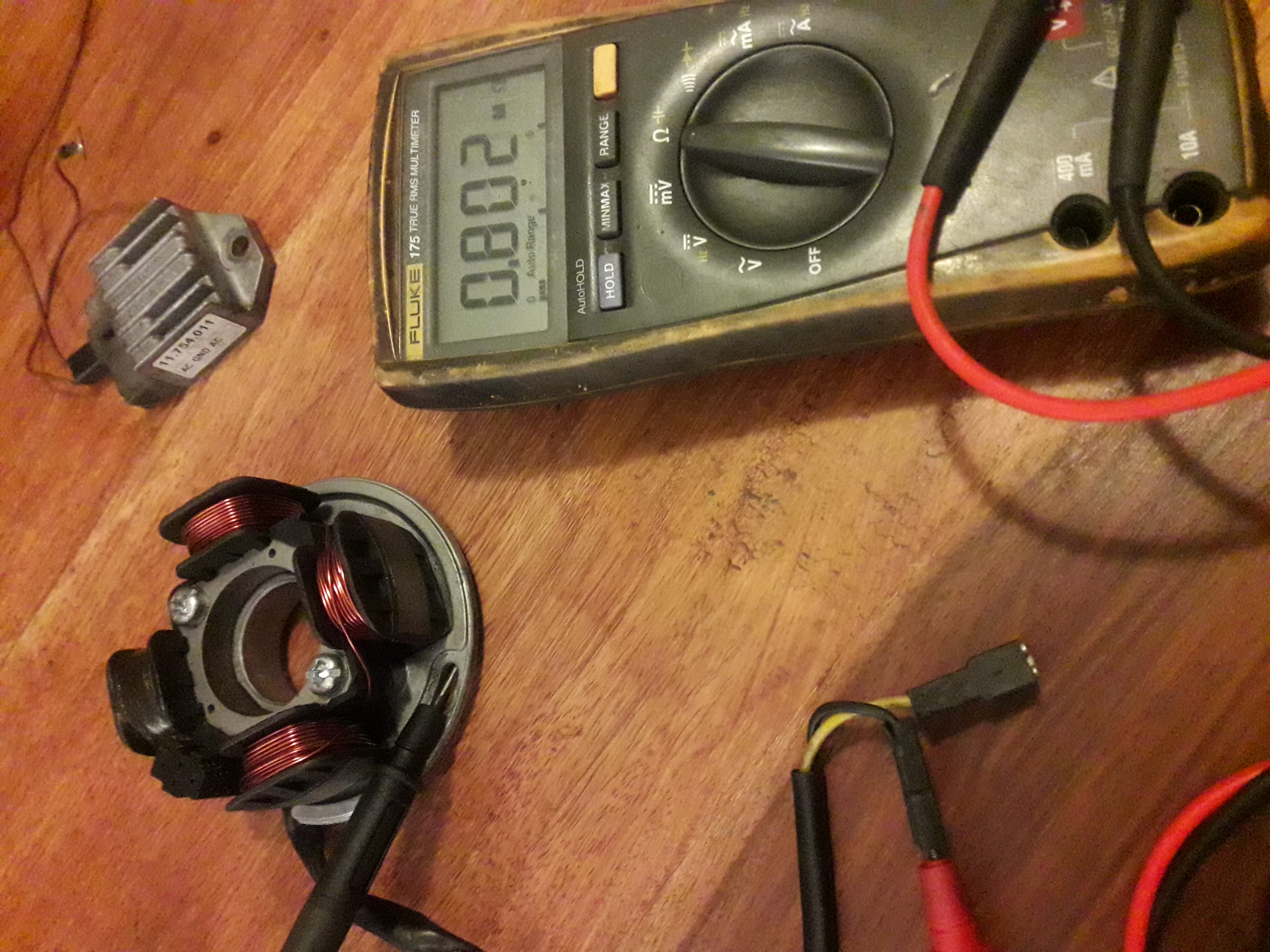 Bougie vervangen en tegen blok gehouden, geen vonk.