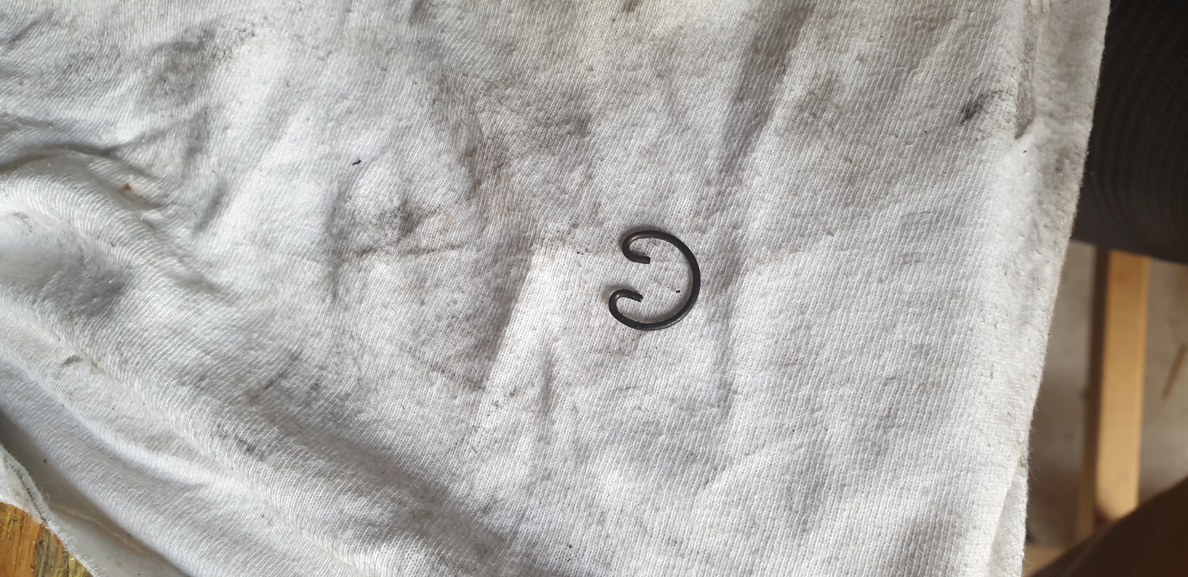 Vwb de olie, dat is normaal, aangezien de demper schuin staat. Dan zakt de onverbrande olie uit de brandstof naar het laagste punt.
