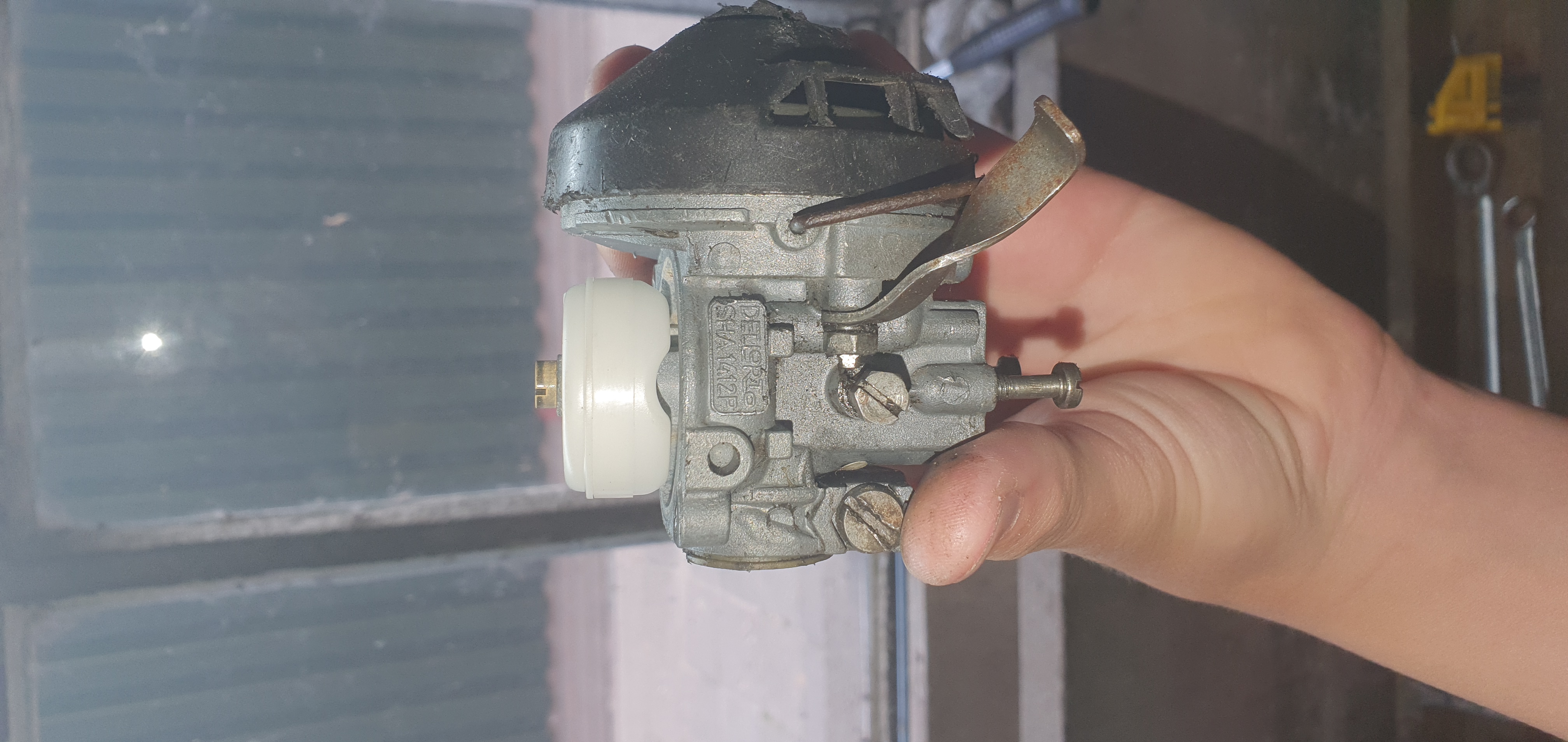 Nee dit is een ander perspectief. Moet ik dat plaatje dan richting de vlotterbak of richting de gasklep buigenVlotter staat op foto 1 te hoog en loopt niet mooi evenwijdig, vlotter sluit de vlotternaald dan te vroeg af waardoor het benzine niveau in de vlotterbak te laag is.
