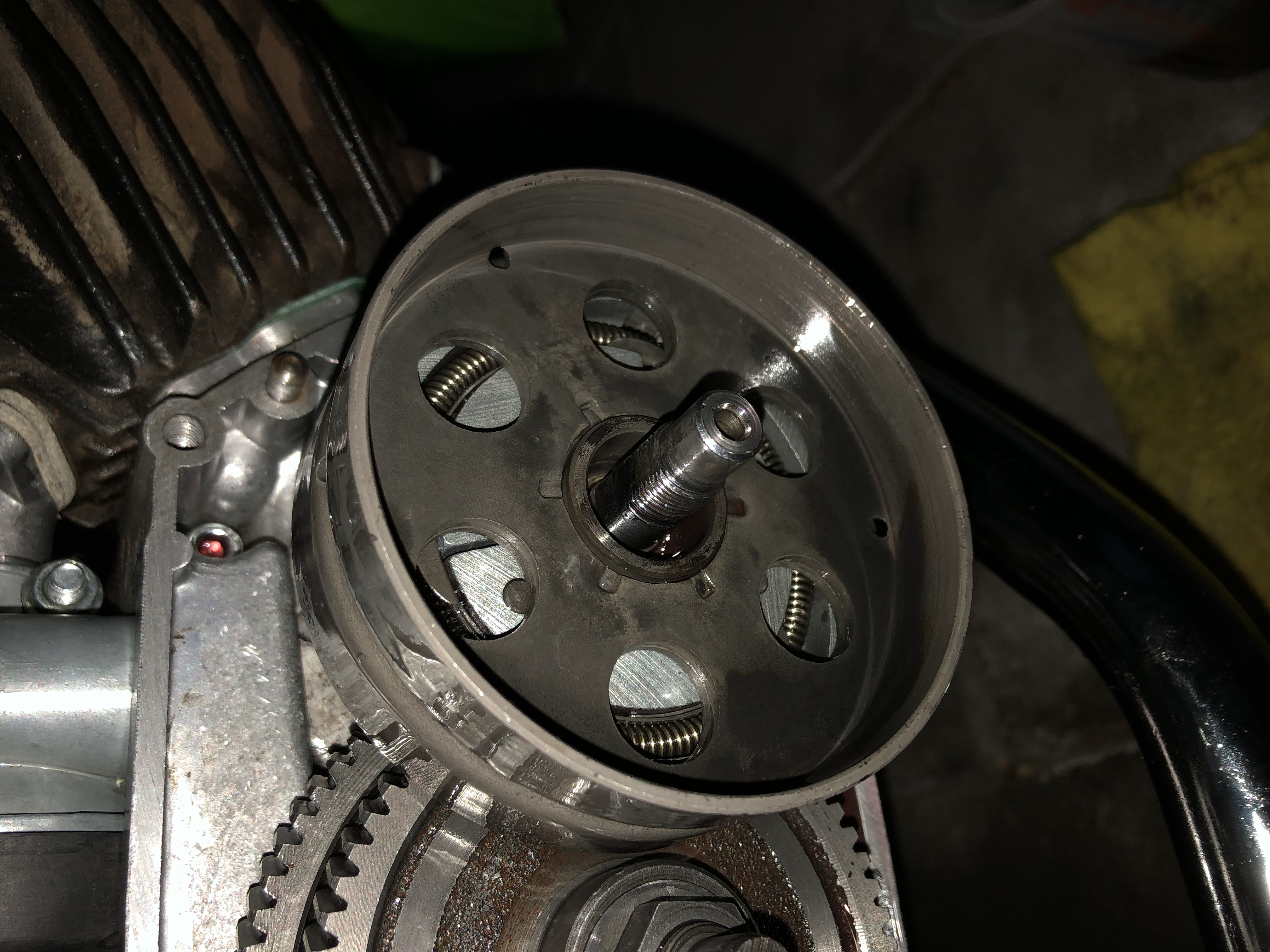 Als je even trekt en duwt aan het koppelings huis moet hij iets verschuiven t.o.v koppeling 0,1 of 0,2mm is genoeg speling.