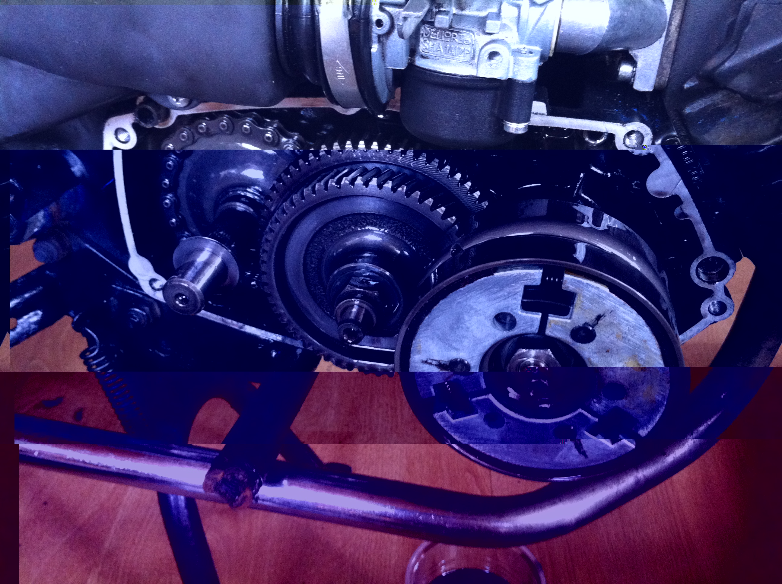 hallo ik heb de carter deksel al dicht gemaakt maar der kwam een veertje er uitZiet er goed uit, de koppeling heeft nog genoeg kurk. Controleer even of je vraagtekenveer nog heel is, dit kan makkelijk als de carterkap er toch al af is. Verder las ik dat je de verkeerde bougie gebruikt, de bougie die jij gebruikt is geschikt voor een snelle 65cc setup. Monteer een NGK B6HS.