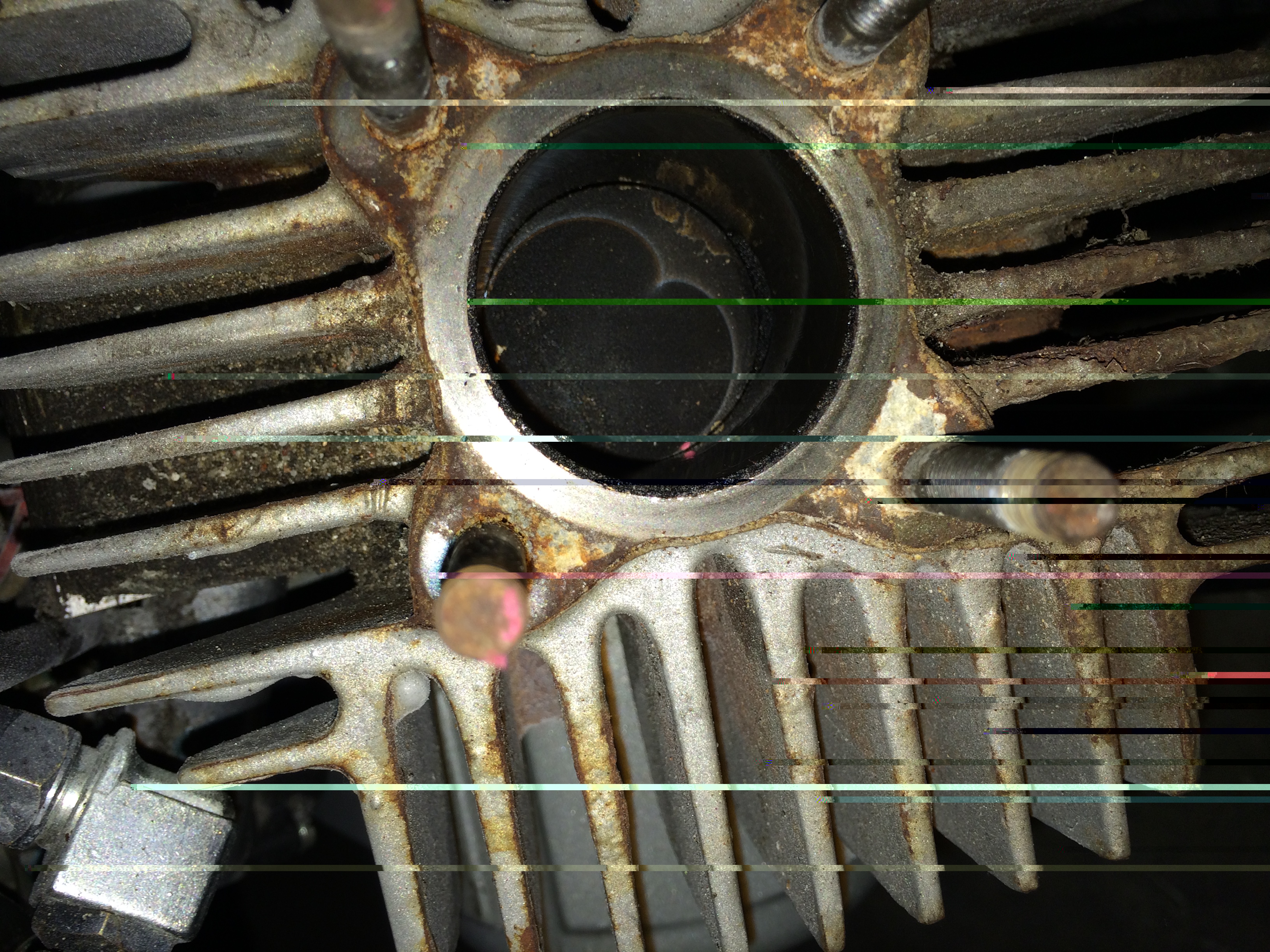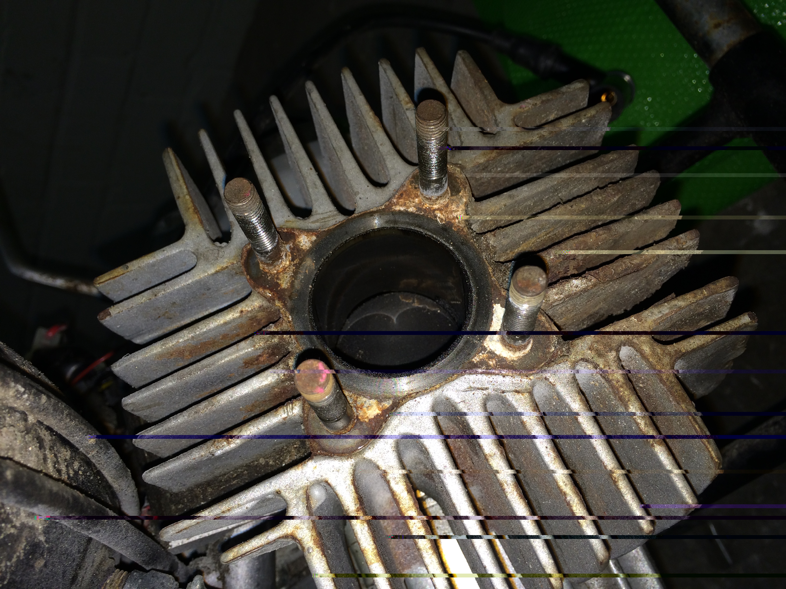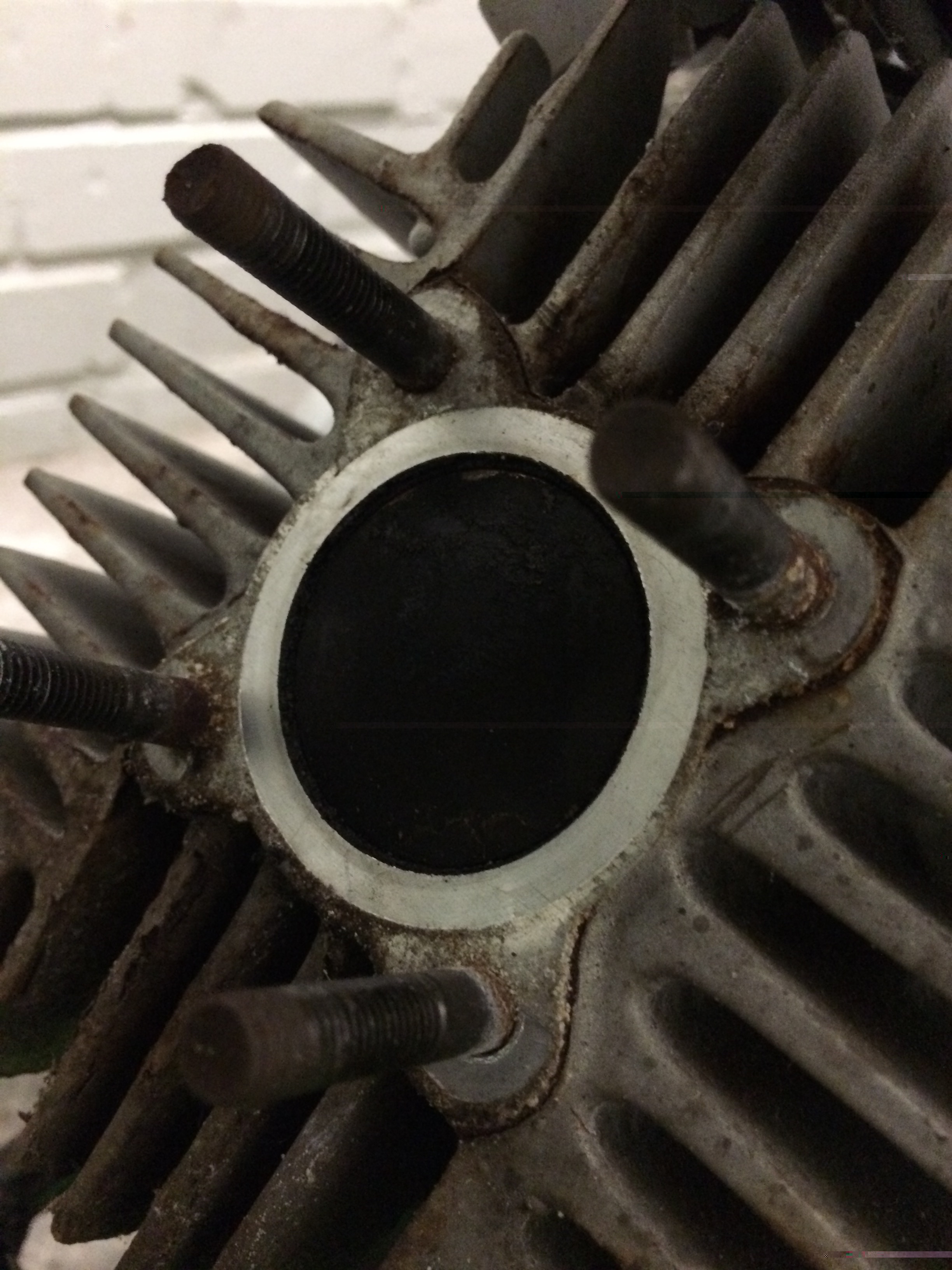 Nu je toch zo ver bent, dan de laatste loodjes ook maar? Aan de voorkant kun je een deel van de tapeinden zien, Daar kun je dus ook wd40 spuiten, zachtjes met rubber hamer tikken tegen de cilinder, oude moer op tapeind zetten en daar wat op tikken, alles om de boel een beetje los te schrikken en dan zouuuuuu je de cilinder er toch vanaf moeten kunnen krijgen.
