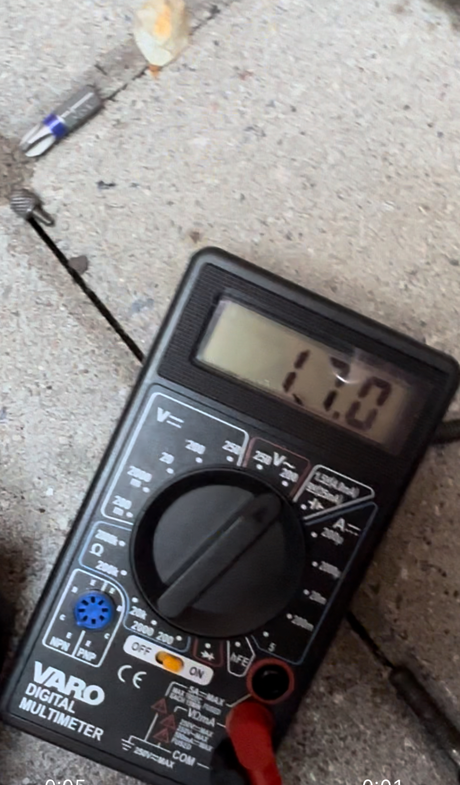 Rode multimeter kabel in de rode onstkeing kabel gezet. Zwarte op mijn cilinder. Instelling op 200~ volt en ik krijg alleen het alleen tussen de 30-40 volt met hard kicken