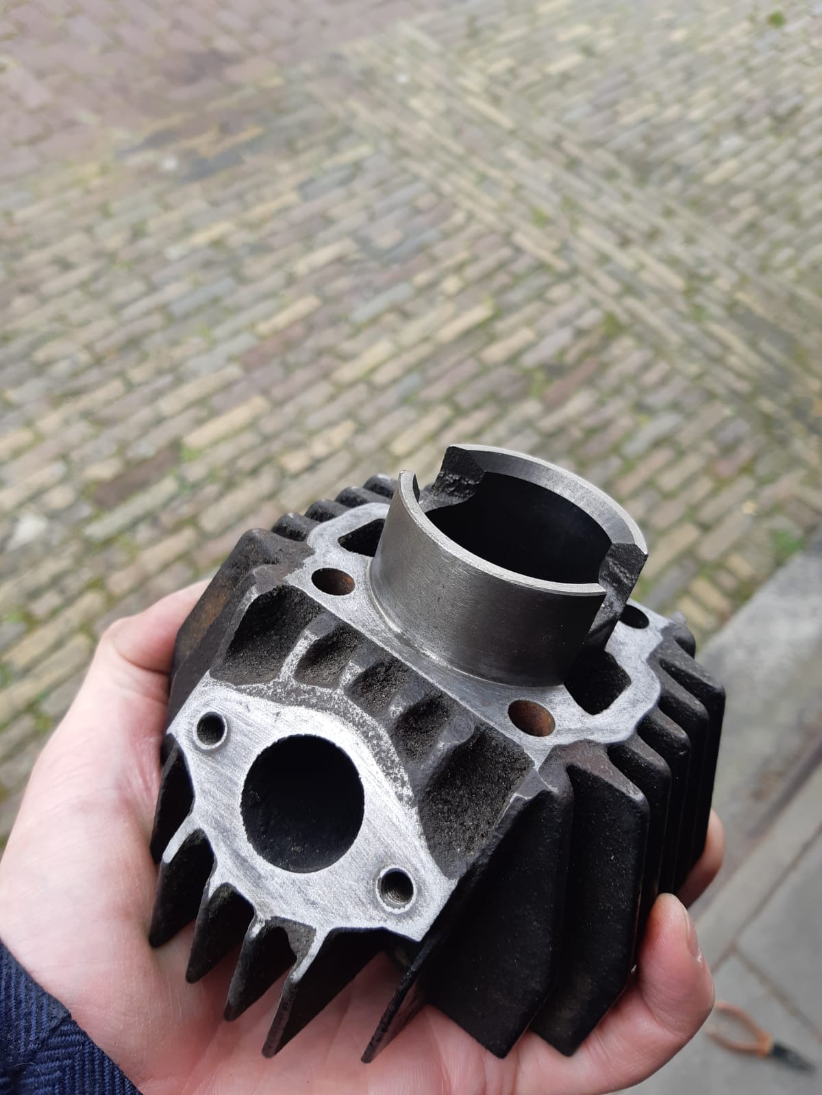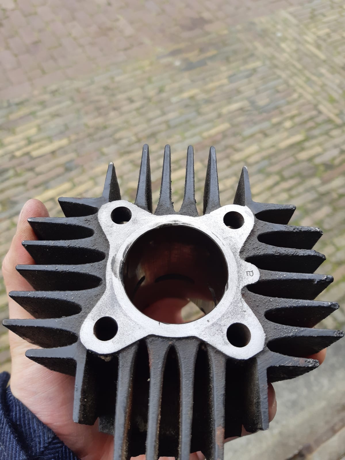 Misschien lijkt de zuiger hetzelfde, maar kan het gat voor de zuigerpen op een andere plaats zitten (dichterbij de kop, waardoor de onderzijde de inlaatpoort niet (voldoende) vrijgeeft). Jouw cilinder is zuigergestuurd, dus ben je afhankelijk van de juiste zuiger.....