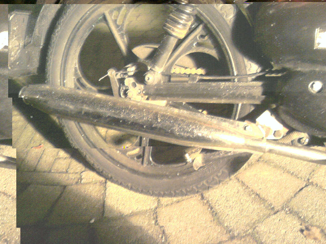 Die uitlaat is er sowieso later op gekomen. Kijk maar eens hoe hij achterop vastzit.