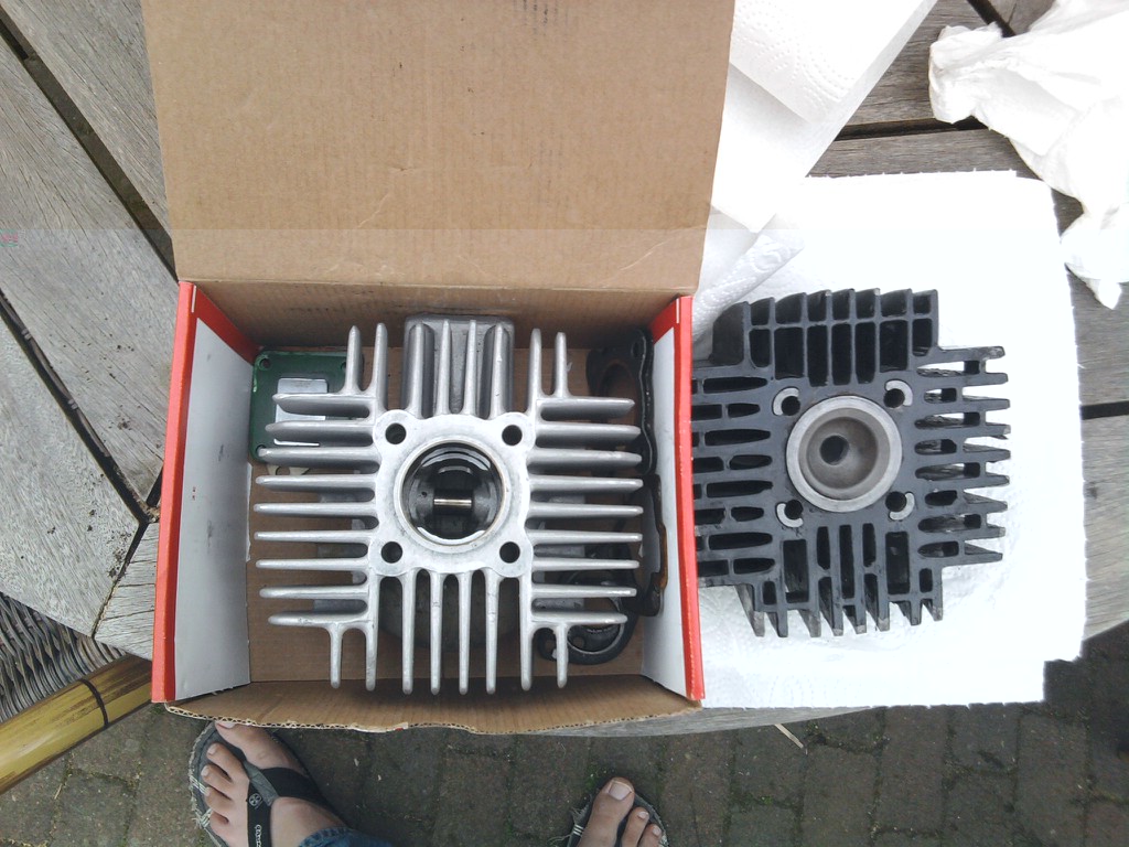 eerst heb ik de zij kappen er op gezet maar dat was natuurlijk weer een gehanes omdat ik een schuin spruitstuk heb op een oud model.