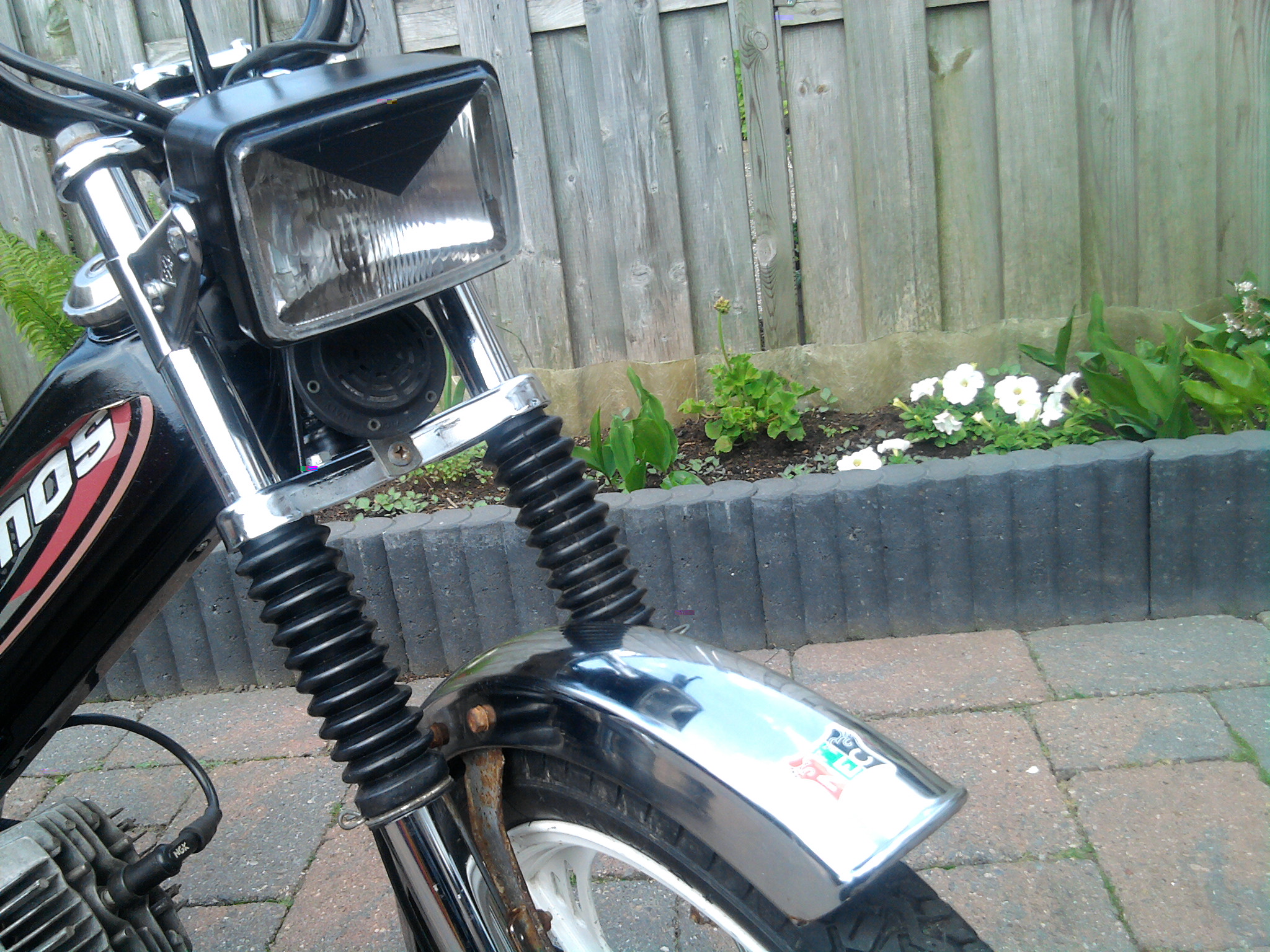Chrome stuur en die zure handvaten er af, misschien zijkapjes erop.