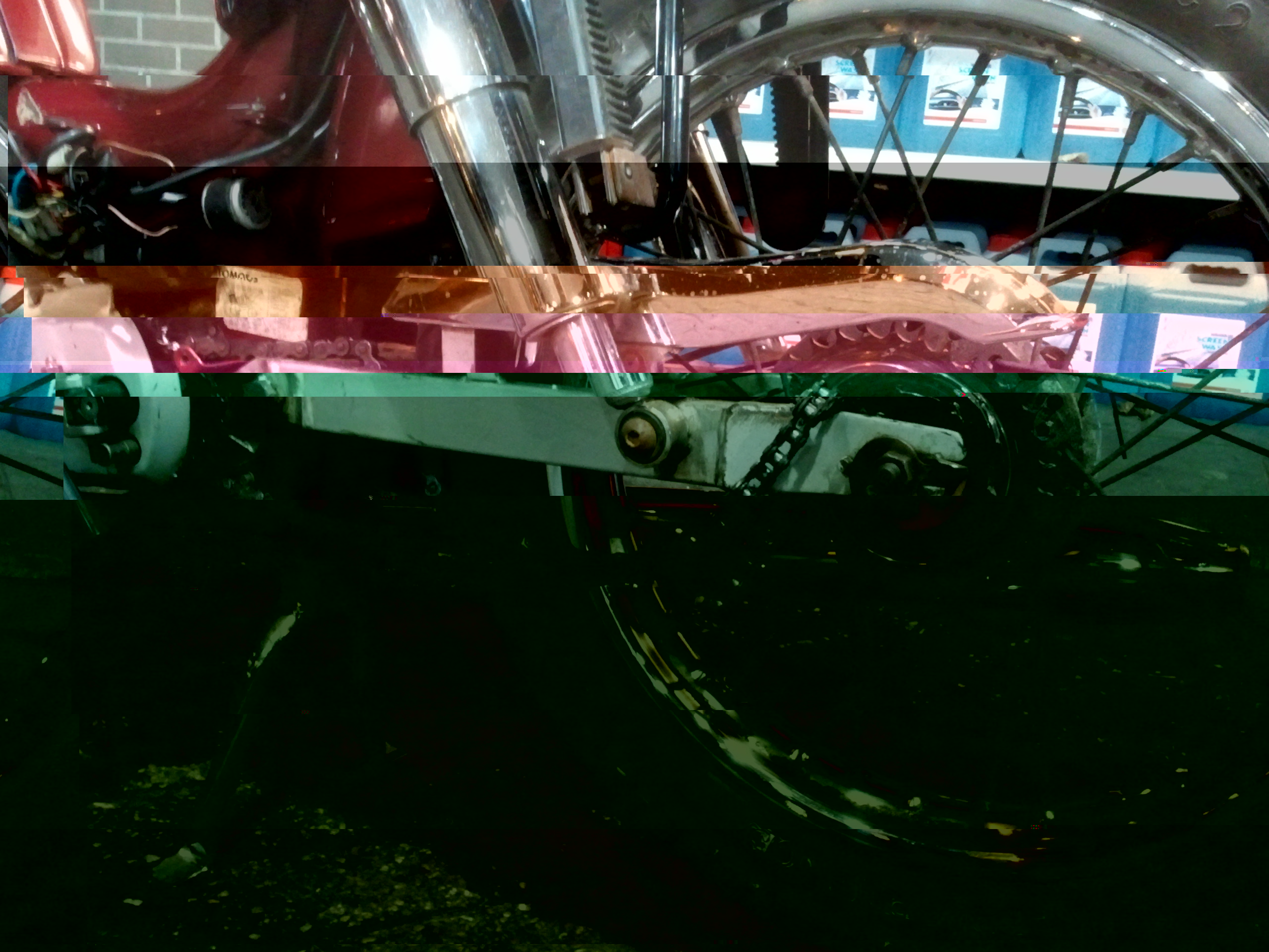 Juist. Dat zie je goed. Tandwielen allebei naar de filistijnen, ketting kapot. Ik heb geen idee wat er gebeurd is, het was met gas terug nemen, ik denk dat het voortandwiel een opsodemieter heeft gekregen waardoor is losgeslagen, hierdoor is de ketting er voor en achter af gegooid. Ketting zat helemaal vast tussen achterbrug en achtertandwiel. Is goed te zien. Tandjes afgebroken van de tandwielen etc..