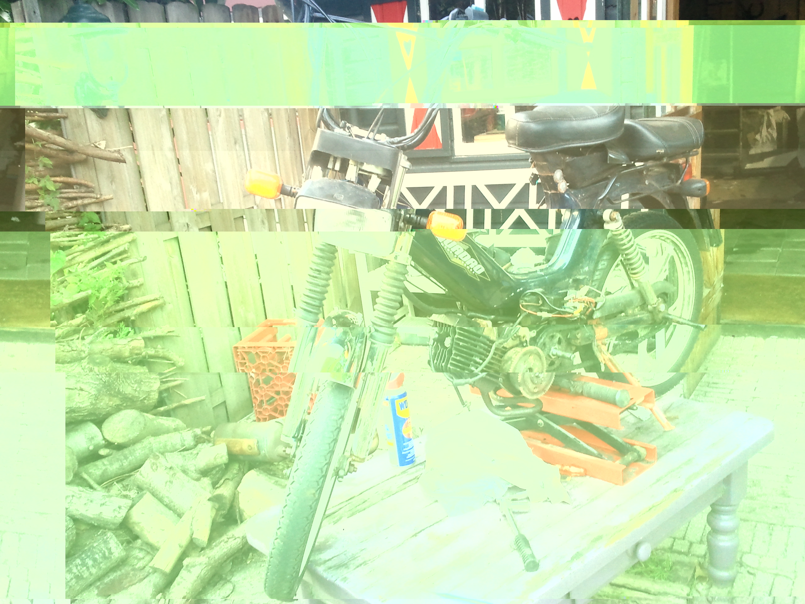 Eergisteren gekocht en gisteren wat onderdelen gehaald, oa bromuitlaat, achterspatbord en nog wat reserve onderdelen als kabelboom, knipperlichten etc. Mocht ik hebben dus waarom niet. Ook een ontsteking erbij gekregen maar het is niet dezelfde als erin zat, namelijk met 2 draden en die erin hoort is met 3 draden. Ook gelijk gevraagd dus als iemand die heeft liggen.