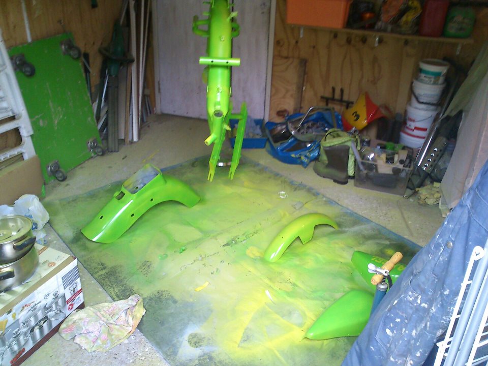 alles uit elkaar en overall liggen onderdelen in mijn te kleine schuur
