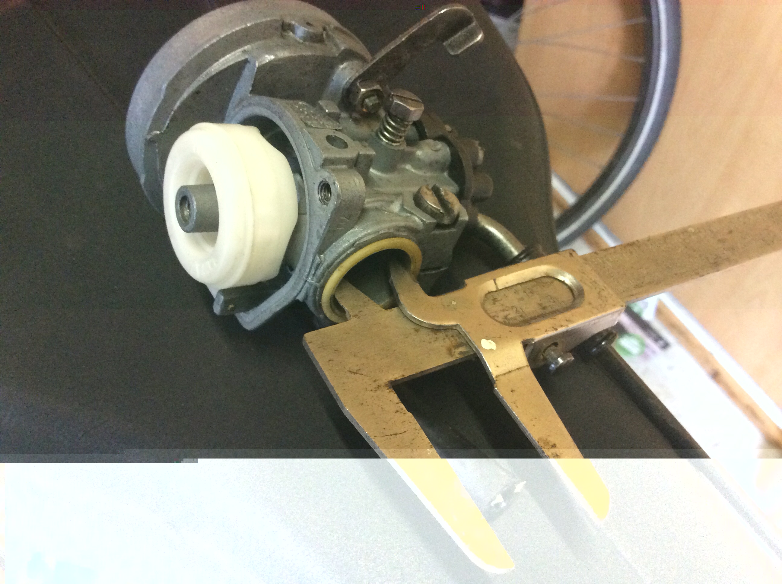 Ik ga er vanuit dat er een 14/9 op zit ivm de sproeiermaat van 50 wat eerder wordt vermeld. De begrenzing zou in principe geen probleem moeten zijn bij deze carburateur, met genoemde klachten. Wat wel van belang is de valse lucht bij aansluiting carburateur/ spruitstuk (let op de naad bij de stationairschroef dat deze goed is afgedicht!).