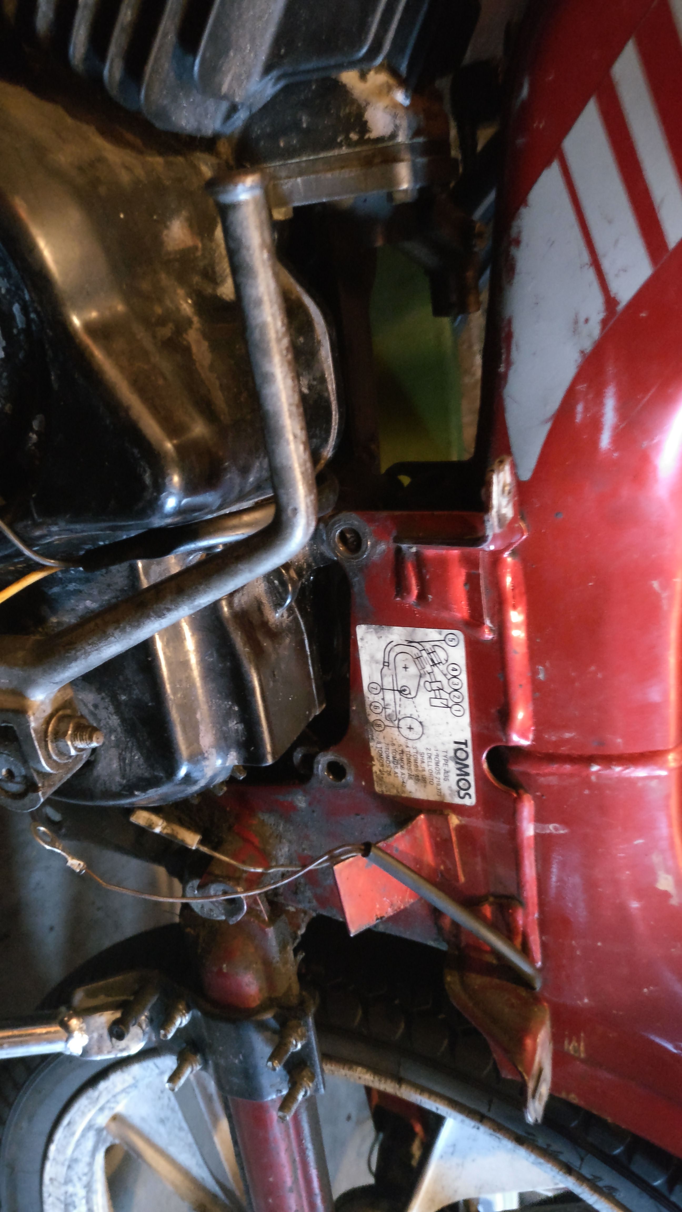 De ophangpunten van een Tomos met plastic kappen hebben een andere plek dan de oudere types met metalen zijkappen.