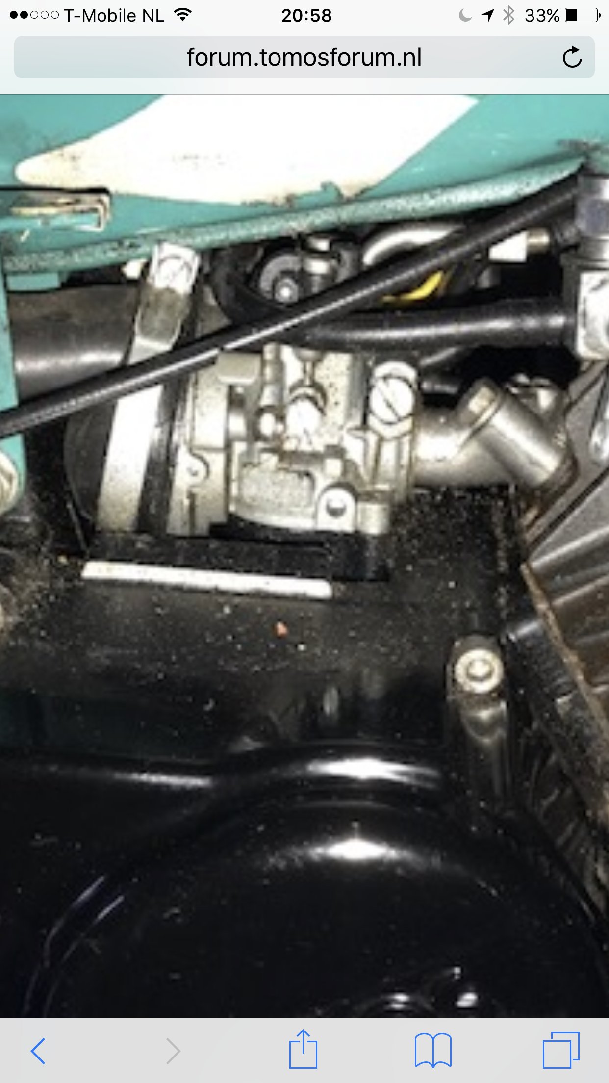 Als ie daar erg(!) lekt kan dat wel van invloed zijn.Hier zie je dat de aanvoer niet helemaal goed op de carb aansluit of hoort dat zo?foto van de brommer/het blok? je hebt namelijk verschillende types blokken zowel 1 speed als 2-speed