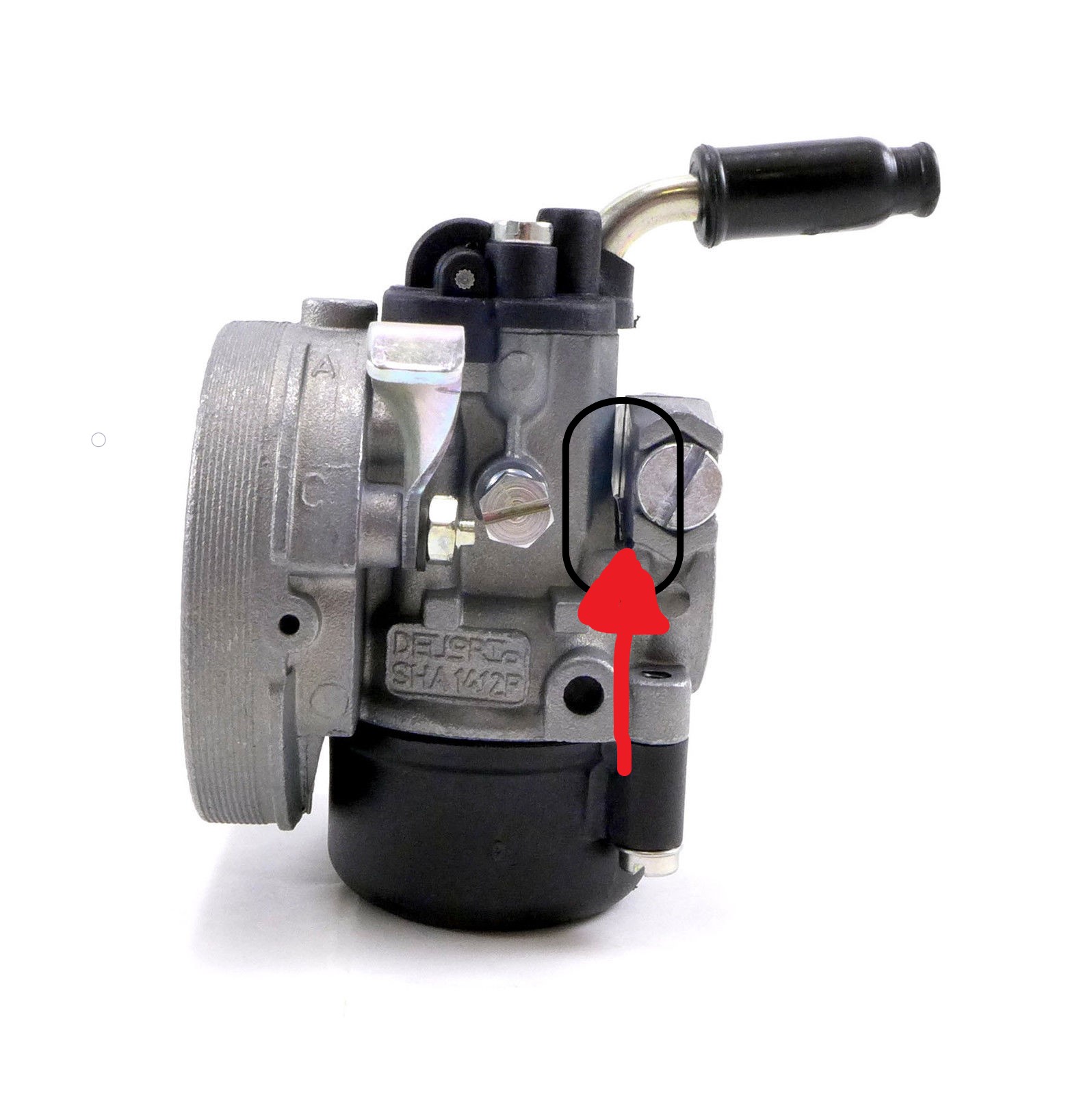 Zorg ervoor dat de bus goed aansluit op de rubberen ring achterin de carburateur voordat je deze monteert.