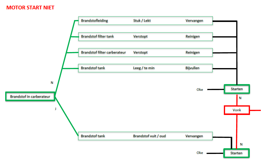 alle hoop komt van boven wordt wel eens gezegd, maar na wederom in de schuur te hebben gesleuteld, gedacht, opgezocht, nog steeds geen resultaat dat hij wil starten.