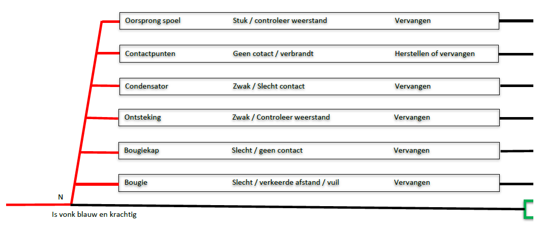 stuk van bougiekabel afgehaald (geen vonk)