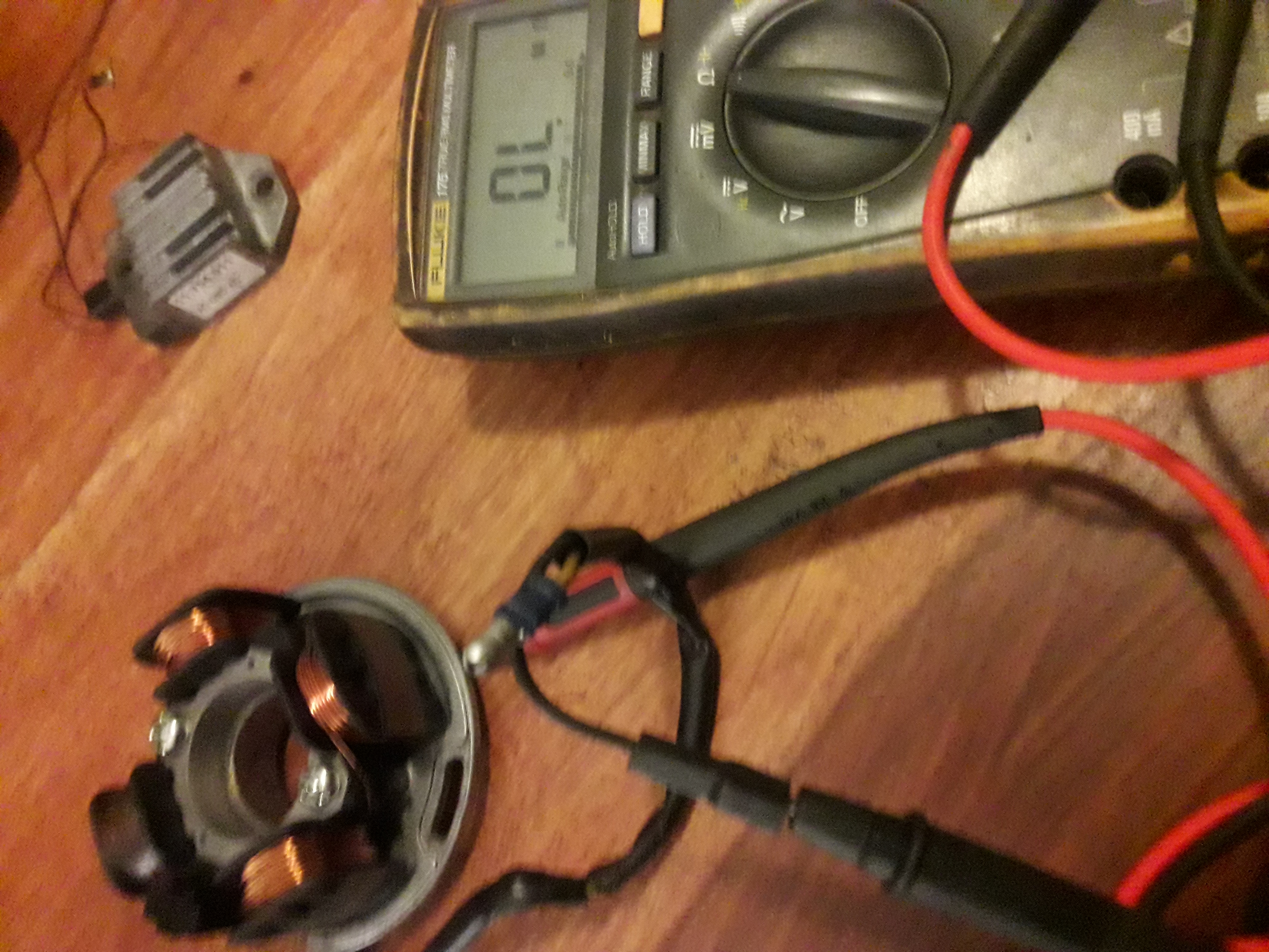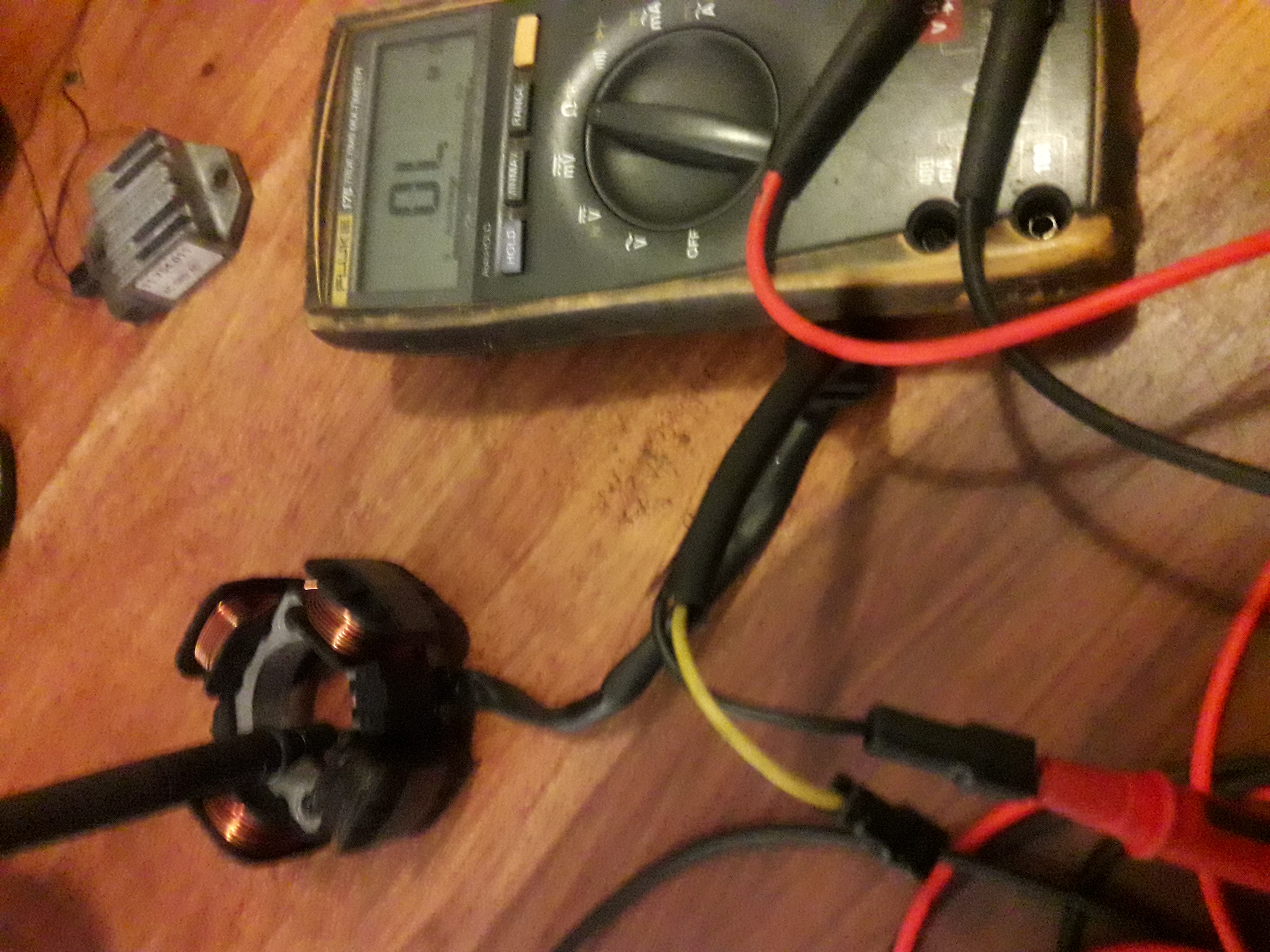 Je kunt die van 760 ohm proberen maar ik verwacht dat daar geen spanning genoeg uit komt, ff monteren en dan tijdens het kicken-starten meten op de zwarte draad dan moet je meer als 60 volt wisselstroom meten.