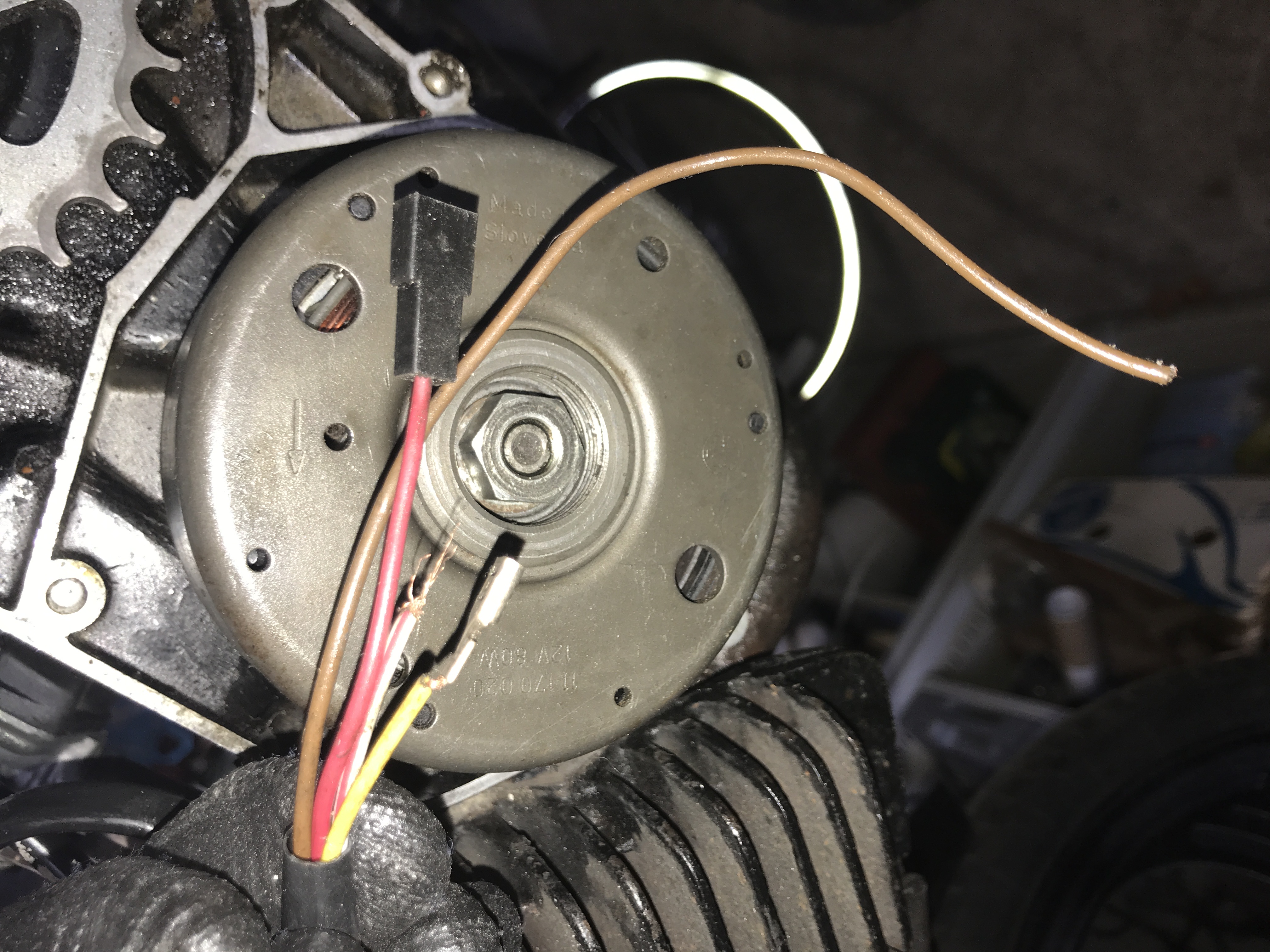 Ik heb een 4 draads ontsteking en een 2 draads bobine. Welke is degene die ik op de rode aansluit op de bobine? Normaal is deze zwart. Is de gele draad op de ontsteking wel gewoon voor de lichten? Wat moet ik met de andere 2 doen? Moet de bruine draad nog contact maken?