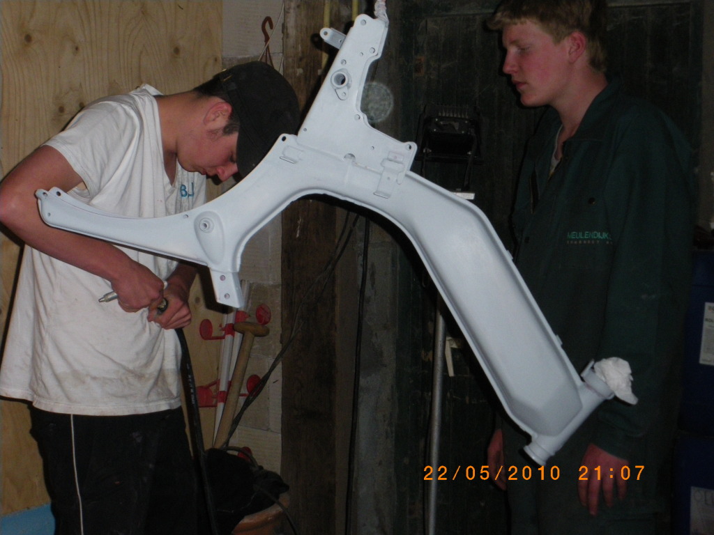 Vandaag het frame geschuurd en in de primer gezet!!