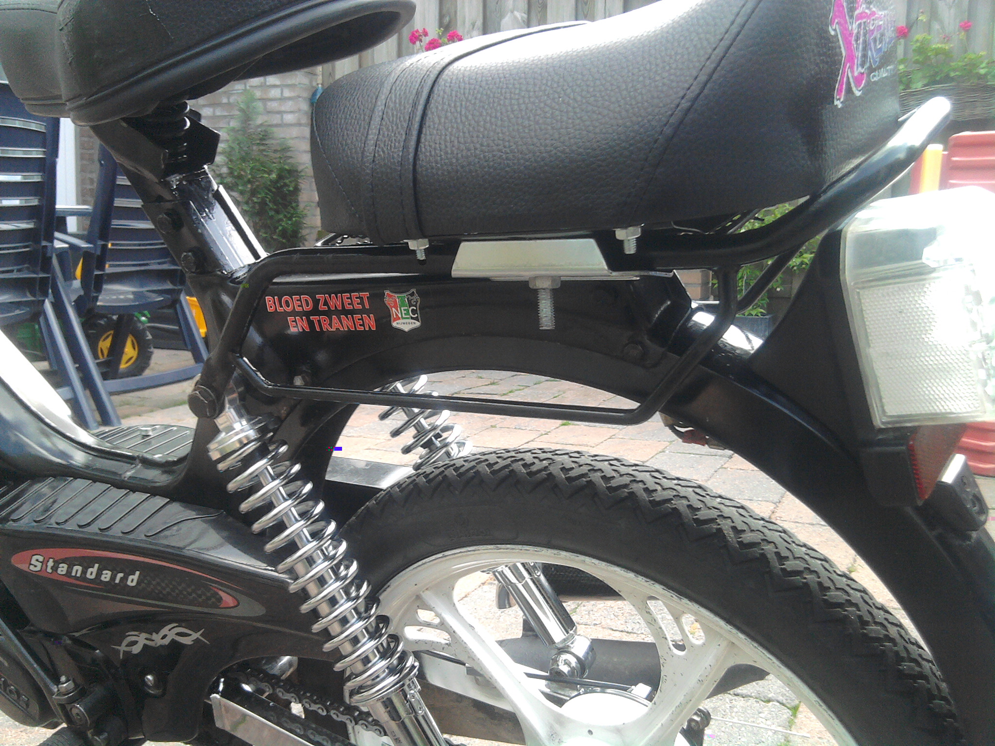 Chrome stuur en die zure handvaten er af, misschien zijkapjes erop.