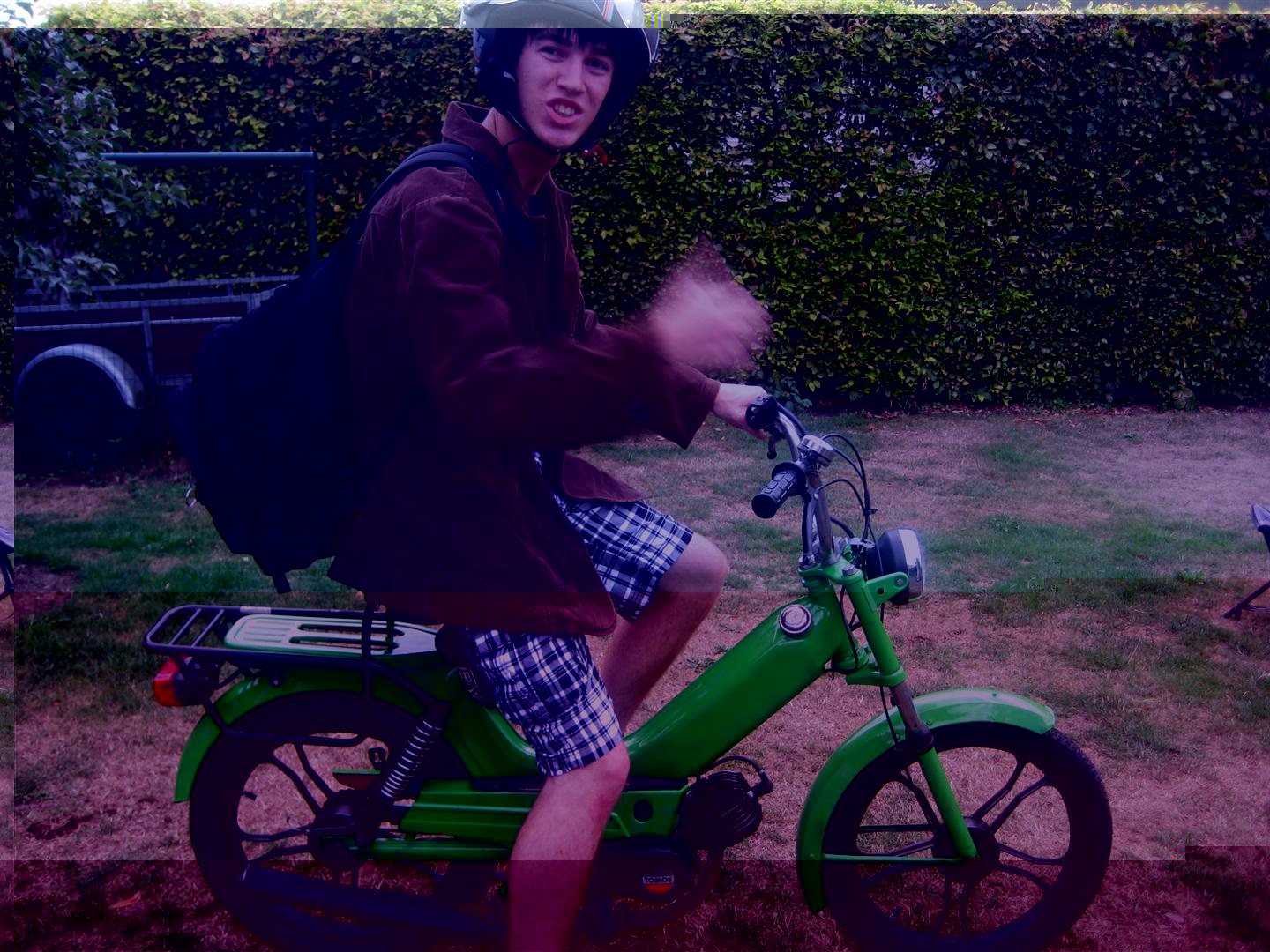 Het is een snor? Maar jij rijdt met helm?