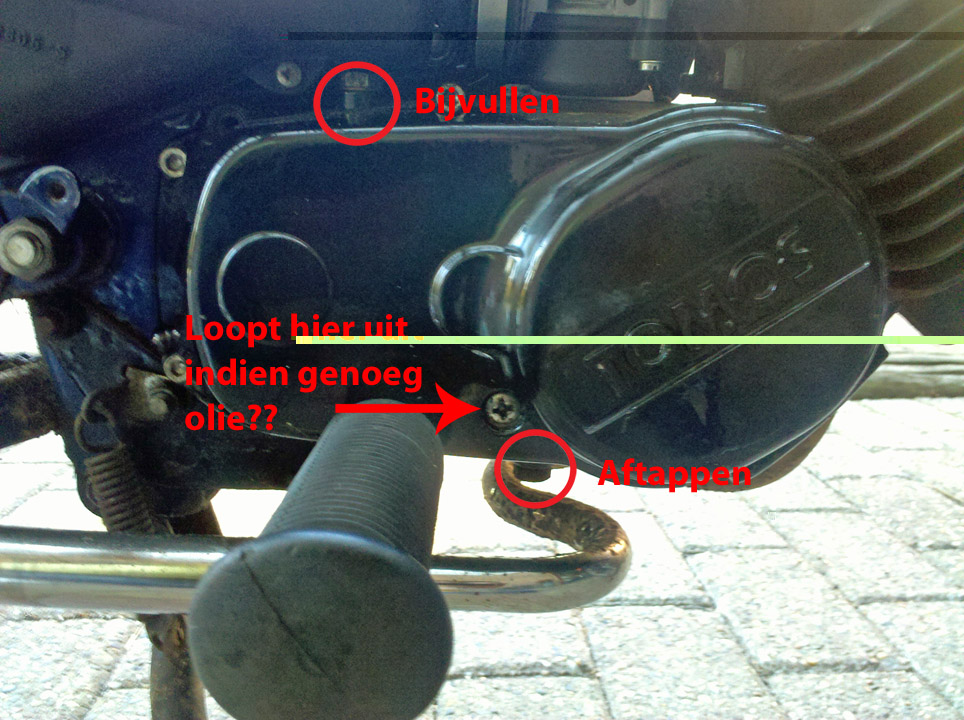 Eerst onderste boutje eruit draaien zodat de olie eruit loopt