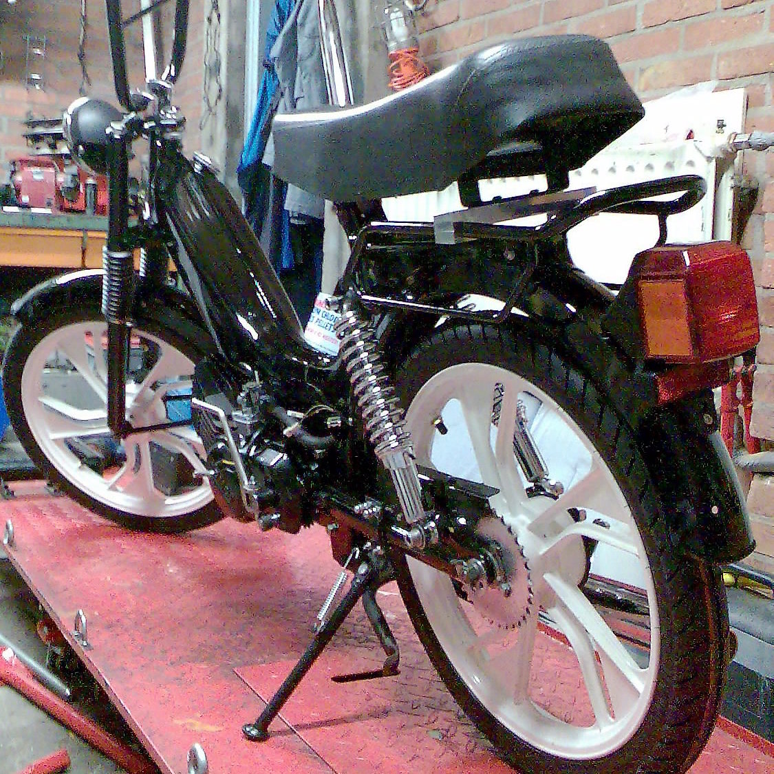 dan nu de aankoop van de sprinter in het eerste geval een oud frame gekocht van een klas genoot waar het blok ook vandaan komt maar wel de rest allemaal zelf gemaakt enzo