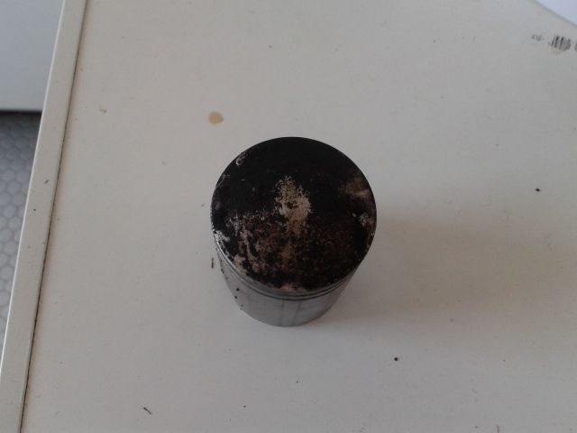 Waarom? Er mankeert niets aan. En die zwarte aanslag kun je met een krabber en een licht schuurpapiertje wel wegkrijgen. Die zwarte plek thv de pistonpen komt van de speolpoorten.