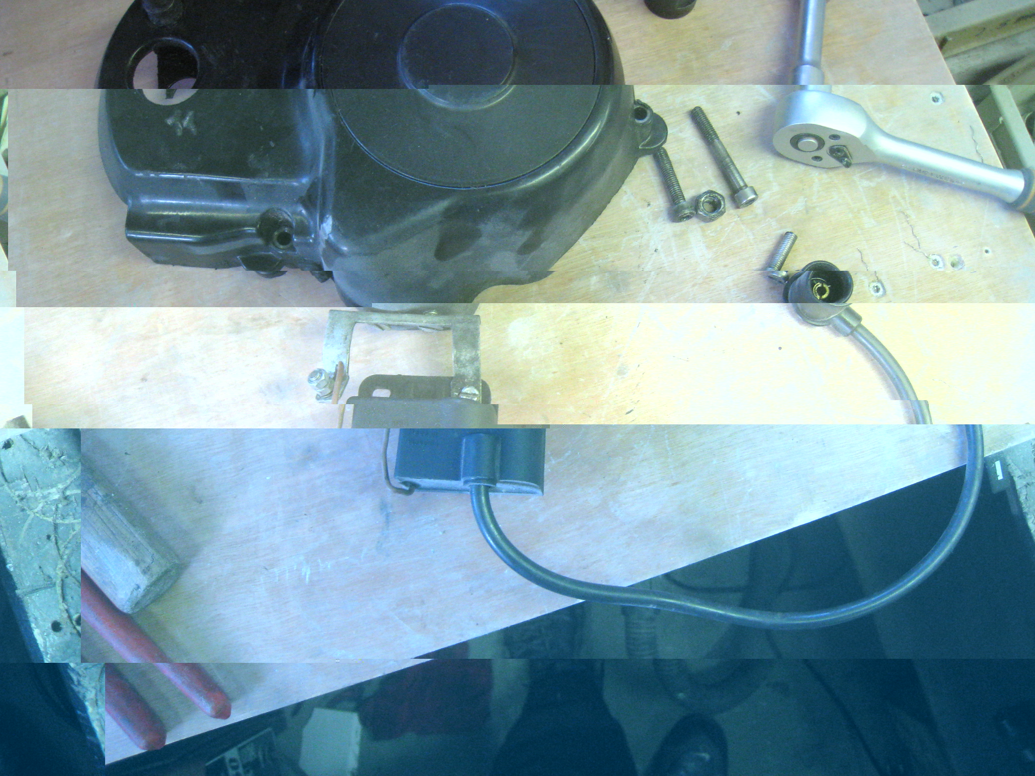 gezien deze ontsteking niet origineel was en dit blok origineel ook niet op mijn frame zat heb ik 3 jaar geleden zelf draad in mijn carter deksel getapt en daar het beugeltje op gezet