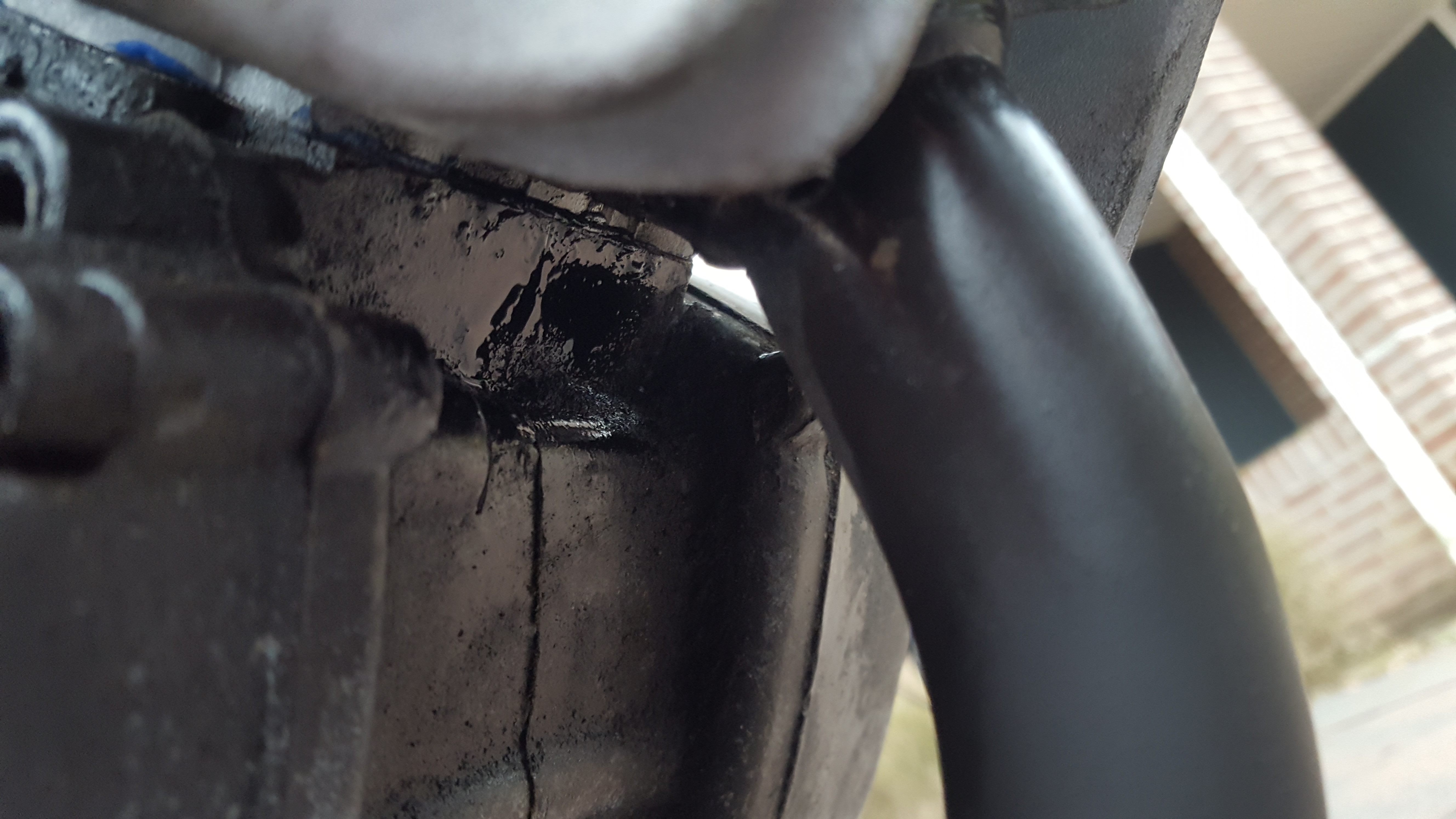 Heb zelf het idee dat de pakking tussen de bak en krukas ruimte gescheurt is en daarom olie aantrekt bij zowel rijden als stationair lopen.