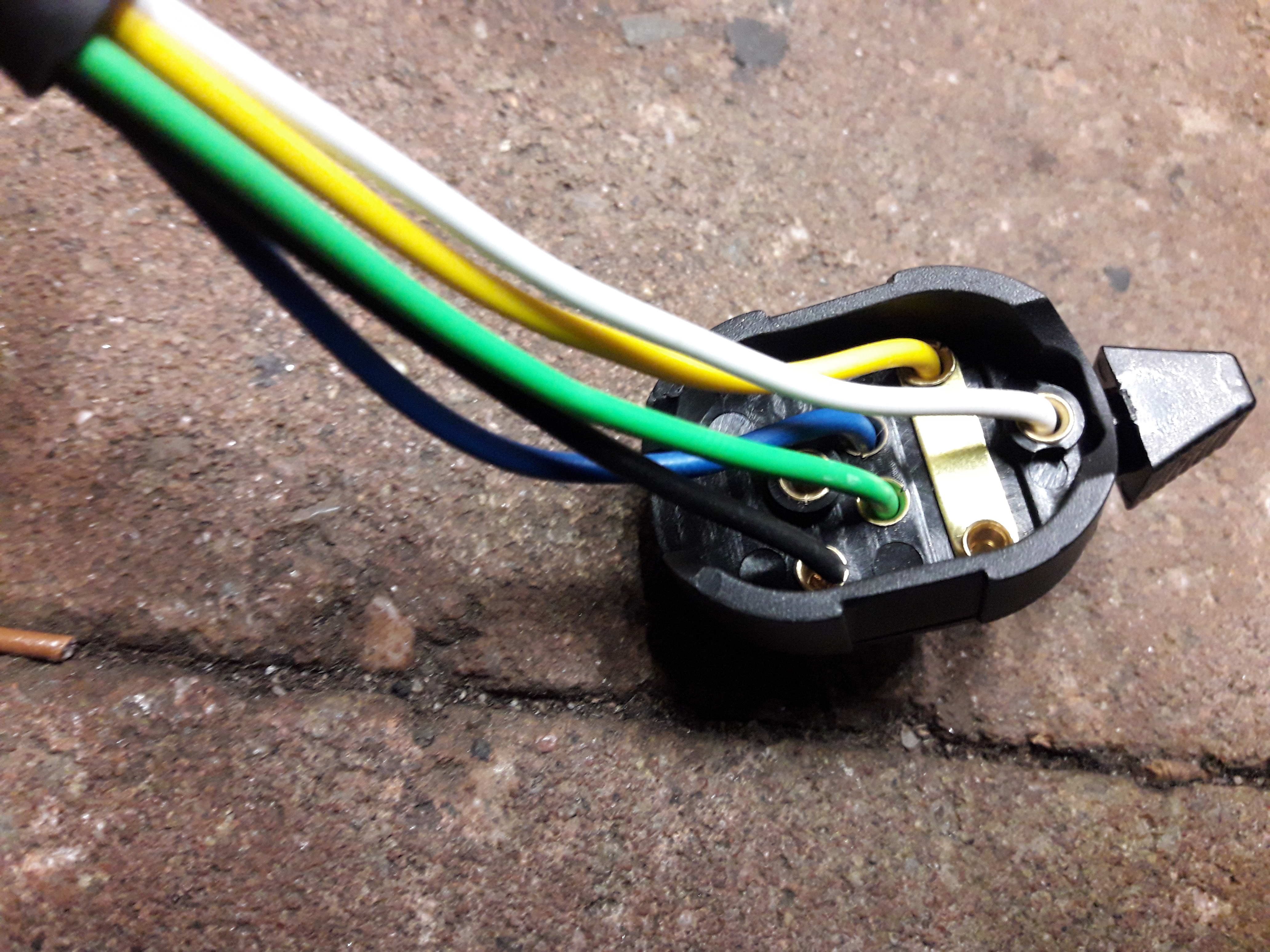 Nu neem ik een bruine draad en hou deze tegen de zwarte zonder schakelaar dan wordt die kort gesloten en gaat uit.