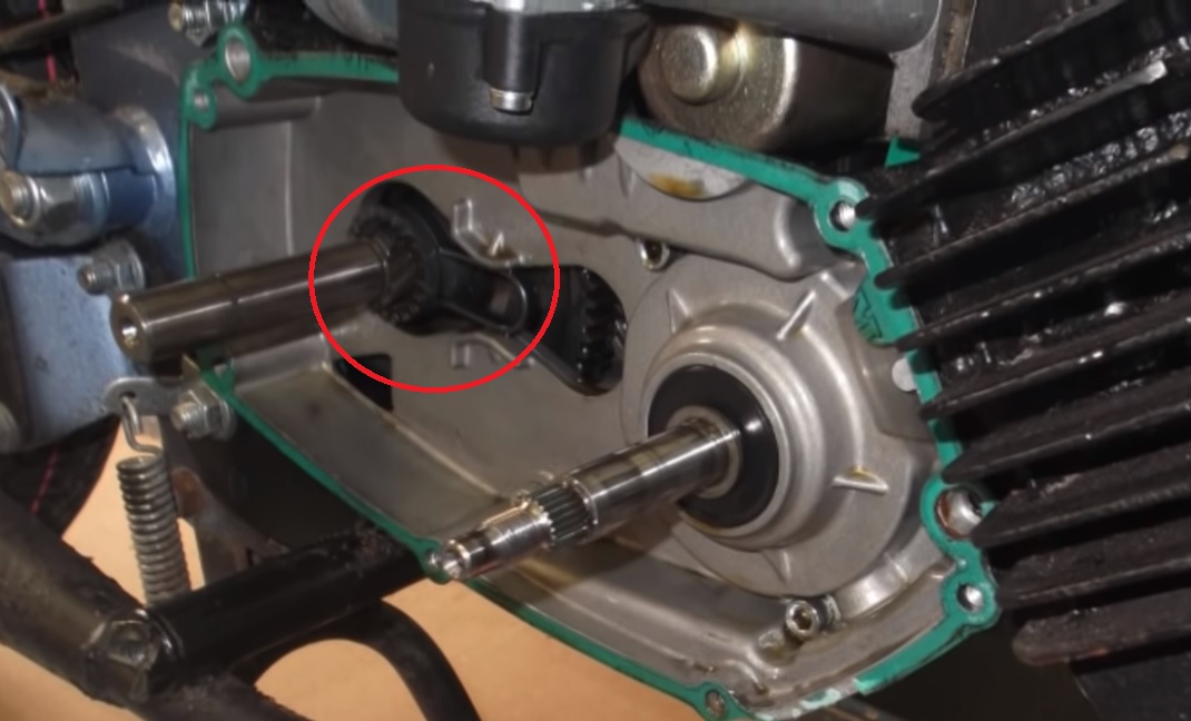 Bij jou loopt het lager niet vrij en daarom kun je niet achteruit lopen met je brommer, als het blokje loopt neemt hij gelijk het koppelingshuis mee en dat hoort niet, dat hoort de koppeling te doen.