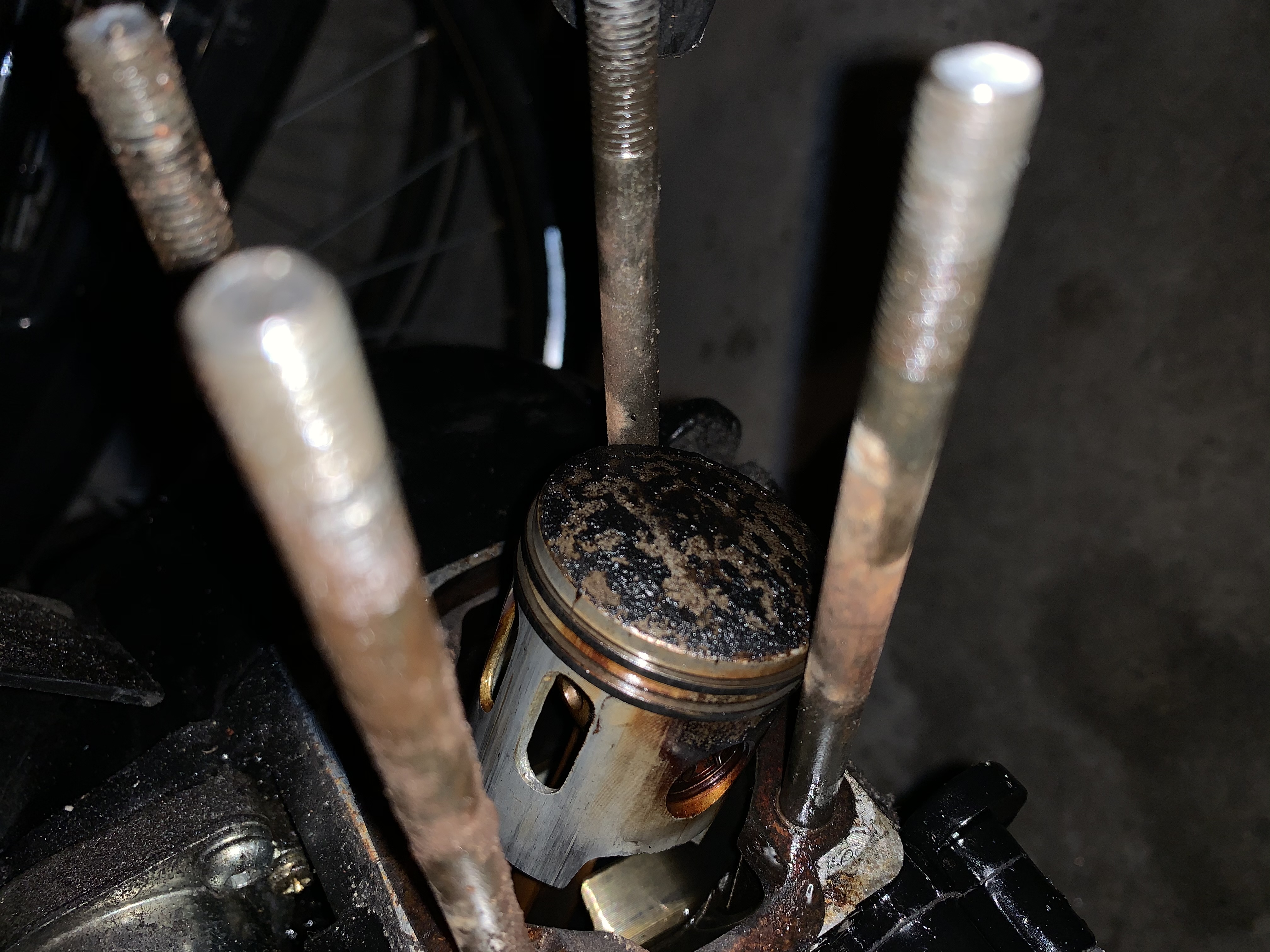 Daarnaast krijg ik het spruitstuk niet van mijn cilinder af. Twee boutjes losgemaakt met een imbussleutel. Twee andere zijn rare boutjes. Iemand enig idee hoe ik die het makkelijkst los krijg?