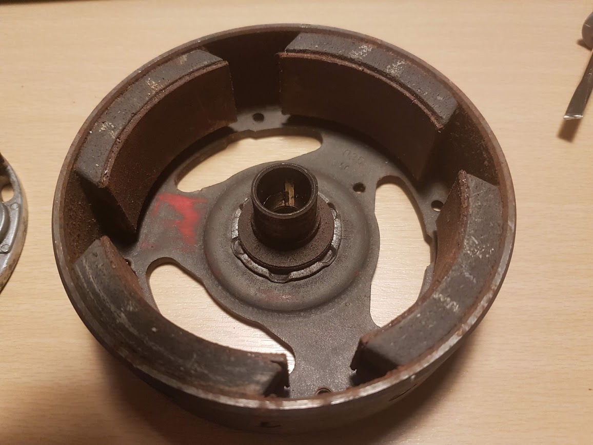 Het vliegwiel druk de punten open en dat deel moet mooi glad zijn anders slijt het fiber nokje van de punten erg snel, viltje in de grondplaat moet je oliën zodat hij het vliegwiel smeert en het zaakje niet roest.