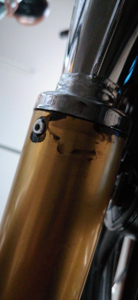 Vwb de olie, dat is normaal, aangezien de demper schuin staat. Dan zakt de onverbrande olie uit de brandstof naar het laagste punt.