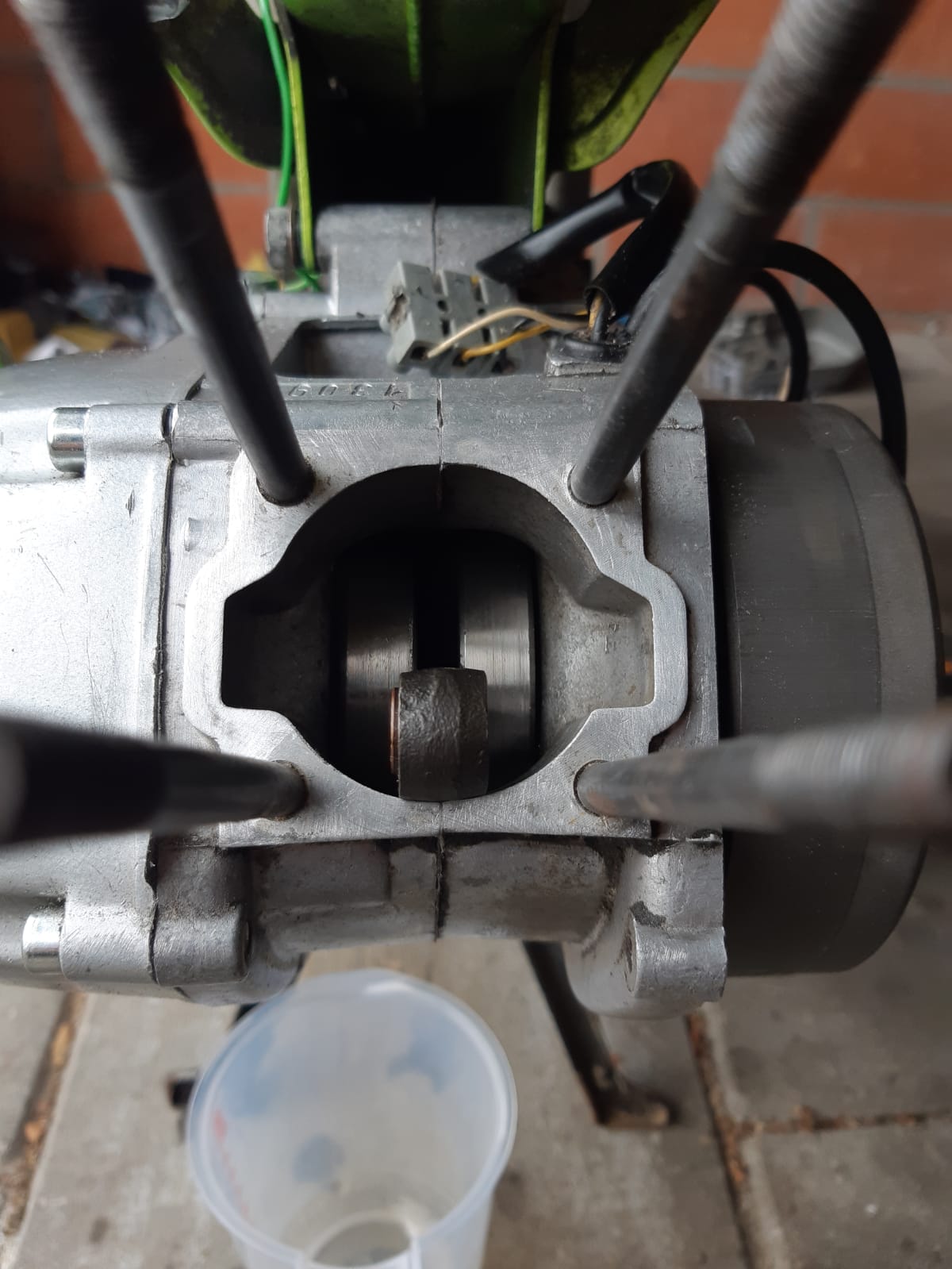 Cilinder ziet er kurkdroog uit op de foto, cilinder en zuiger smeer je in met olie voordat je het zaakje monteert...misschien is het niet te zien op de foto.