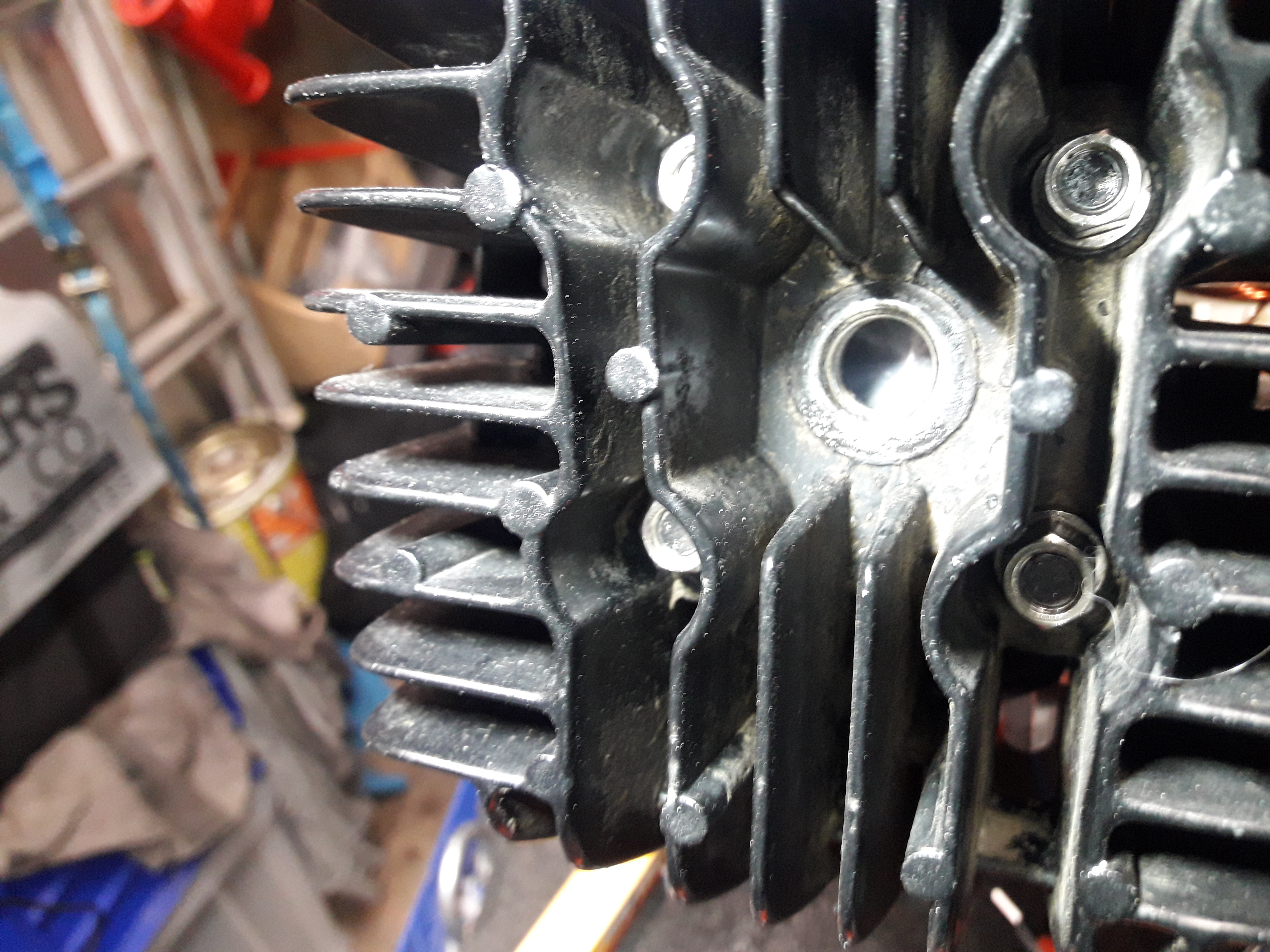 Bougie haal ik er uit omdat ik een hoge compressie heb en dan draai ik de moer van het vliegwiel eraf.