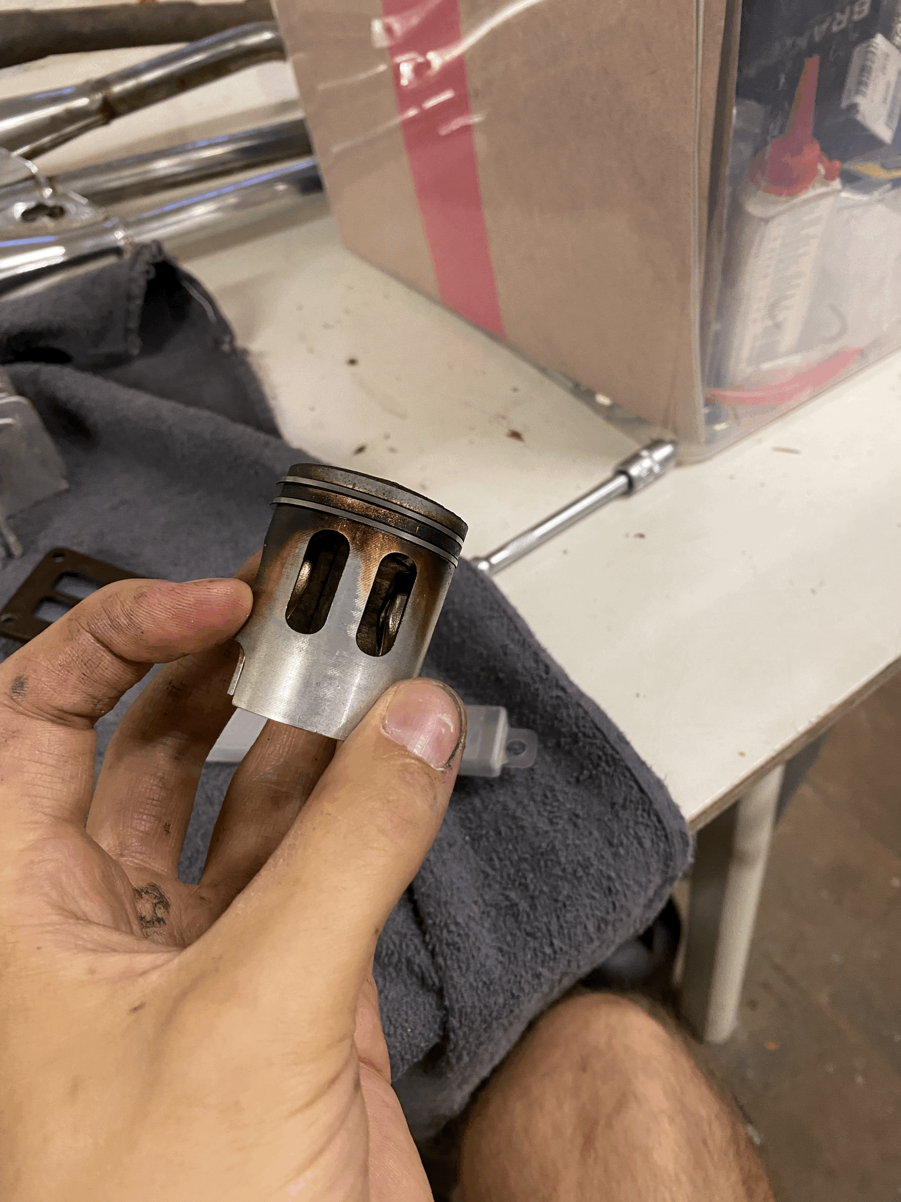 Toch maar mijn cilinder er af gehaald omdat ik hem echt te sloom vind en vind dat hij weinig compressie heeft (dit is echt puur op gevoel natuurlijk), en nu zie ik wel dat er best veel aanslag zit aan de zijkanten van de zuiger, ook onder de zuiger veren. Is dit een normale hoeveelheid na ongeveer 500 km in totaal met deze cilinder gereden te hebben? Een zijkant is overigens veel meer aangeslagen dan de andere kant.