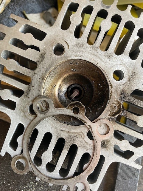 Klopt, mijn blokje had toen valse lucht waardoor hij te arm liep en veelste heet werdt. Ik heb daartoe een nieuw carter gekocht met rechte pasvlakken en alles netjes gemonteerd, toen had hij geen valse lucht meer. Hij werdt toen ook een stuk minder heet, maar toch liep de krukas weer vast. Toen ik mijn cilinder eraf haalde zat heel mijn cilinderkop en de bovenkant van de zuiger onder een soort 'slurrie' noem ik het maar even. Ik heb een foto bijgevoegd hoe de cilinderkop eruit zag,