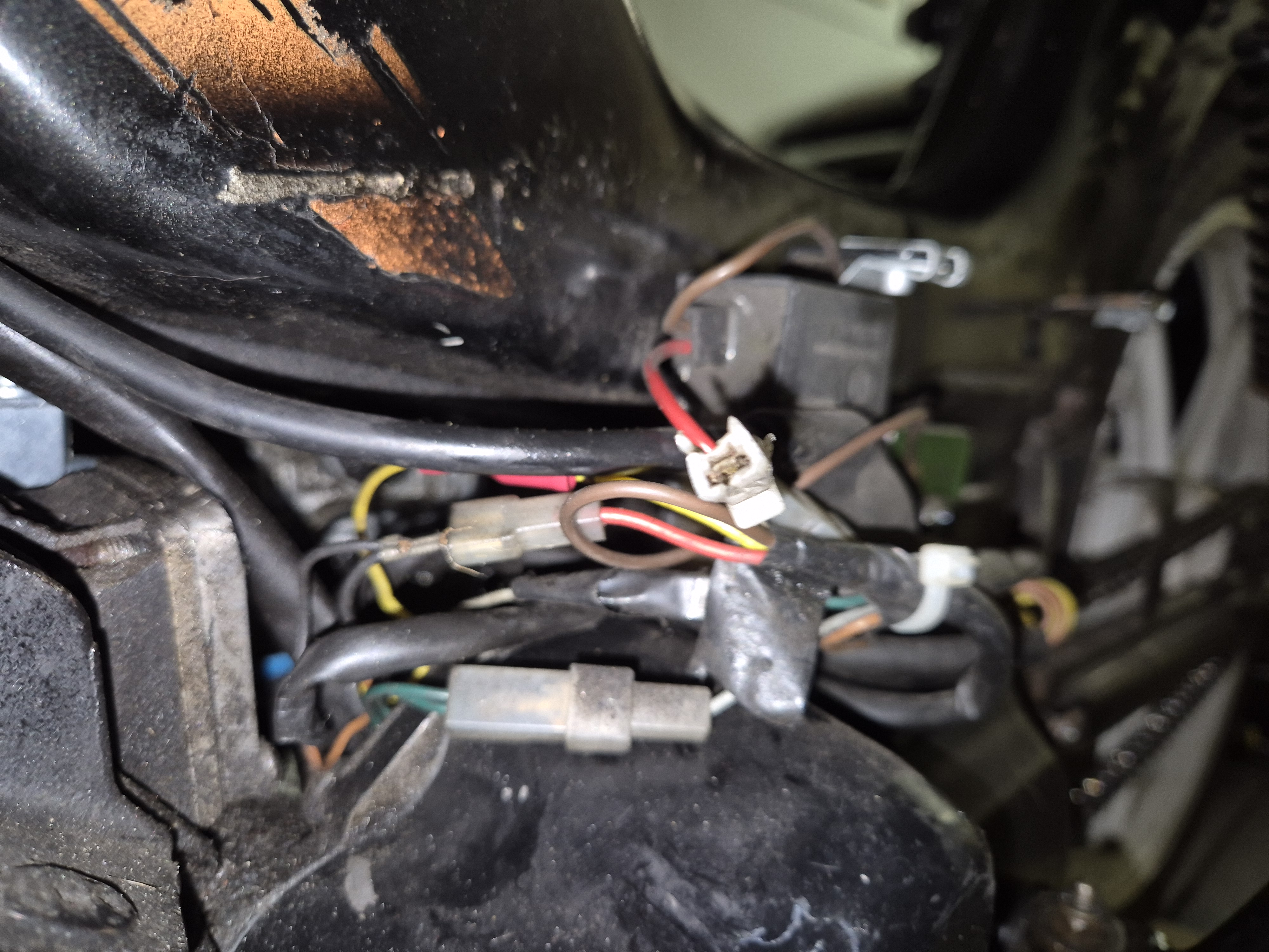 Die rode kabel aan de zwarte kabel die uit het blokje komt maken, nu zit er een aftakking naar de killswitch toe.