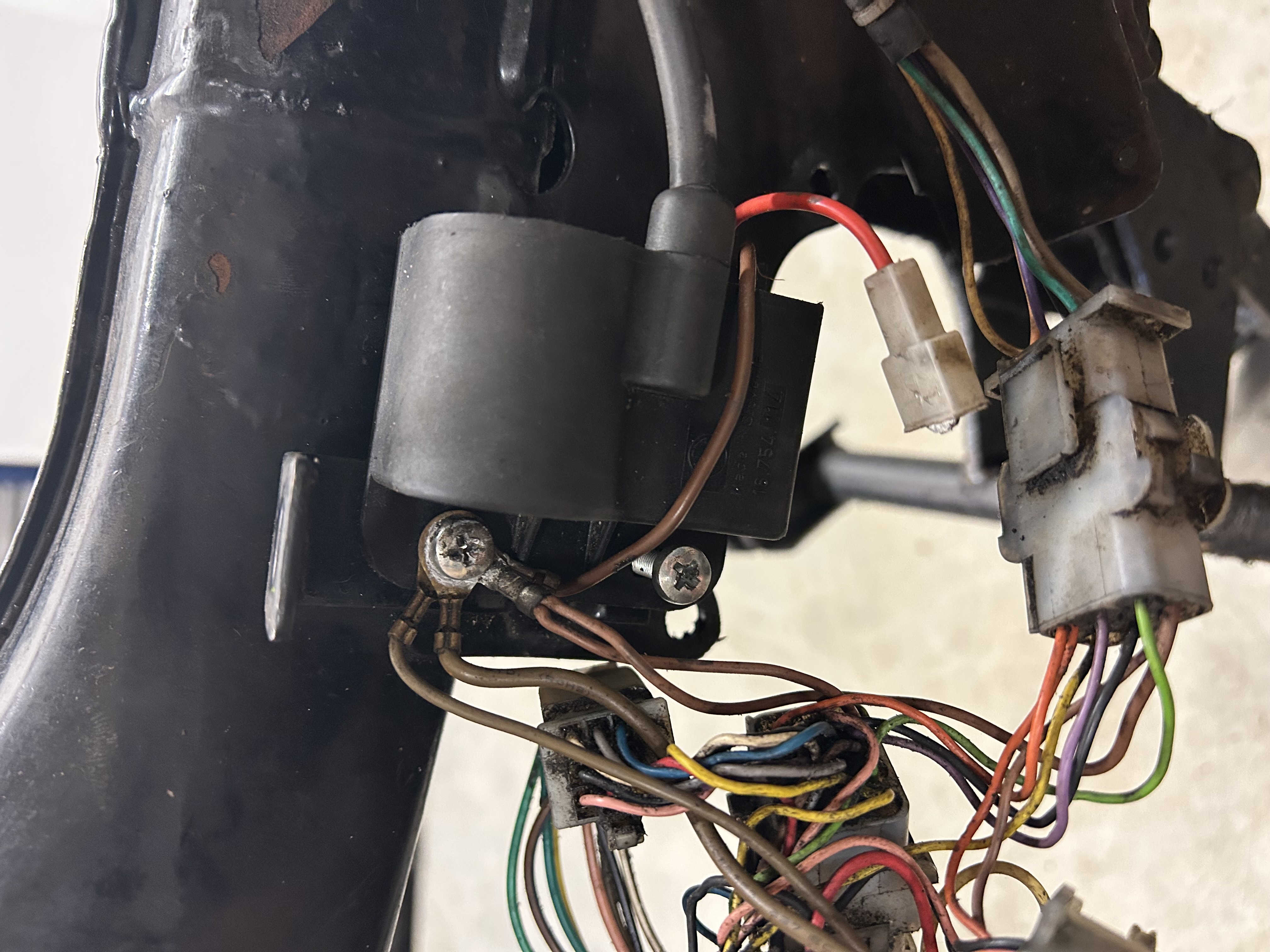 De platte 4 polige connector op de eerste foto is voor de spanningsregelaar.