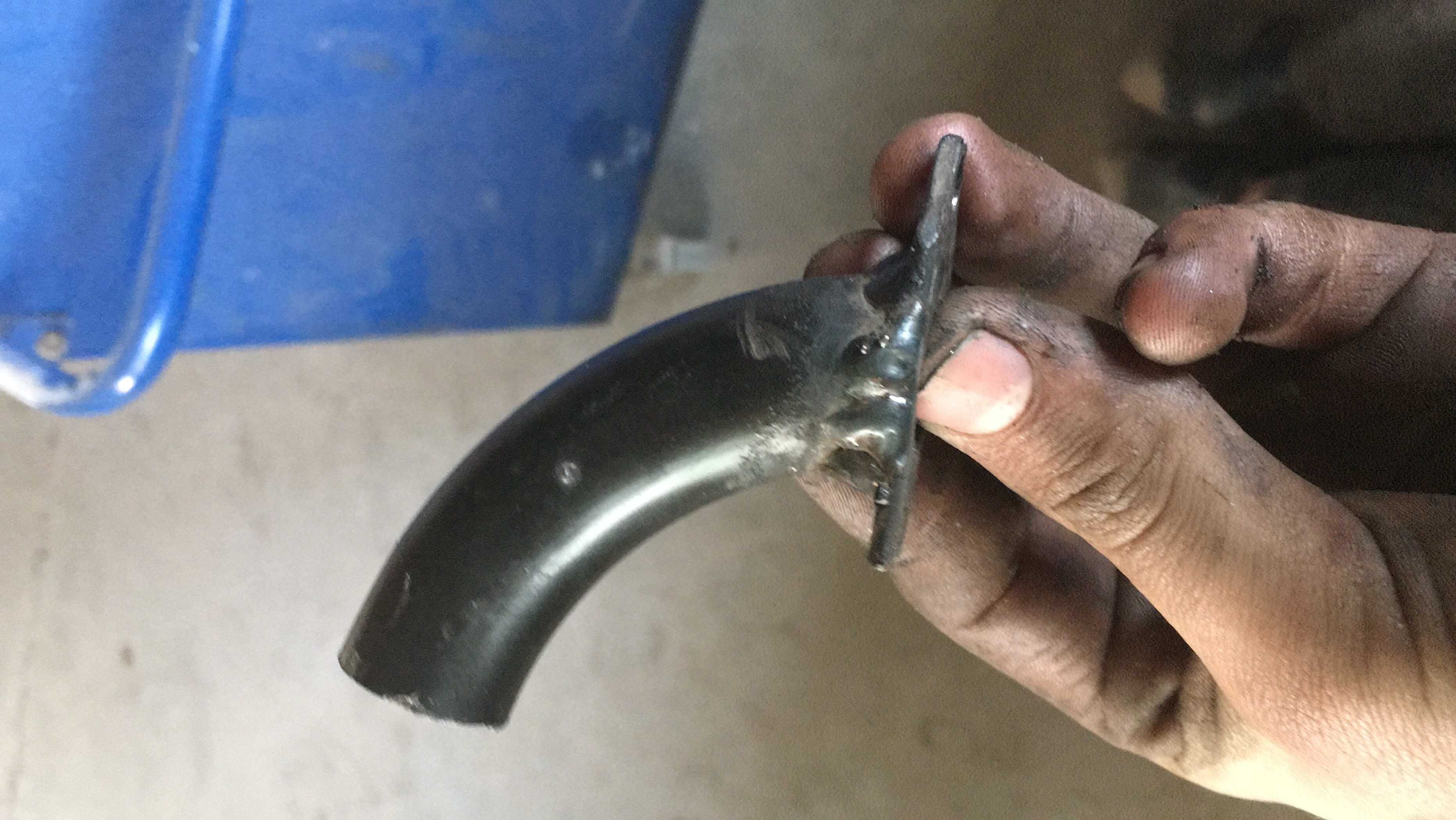 oke, heb vandaag even een flink stuk geschuurt, werd het op een keer een beetje zat en toen begonnen aan zelfbouw spuitstuk. helemaal zelf gelast en luchtdicht :D
