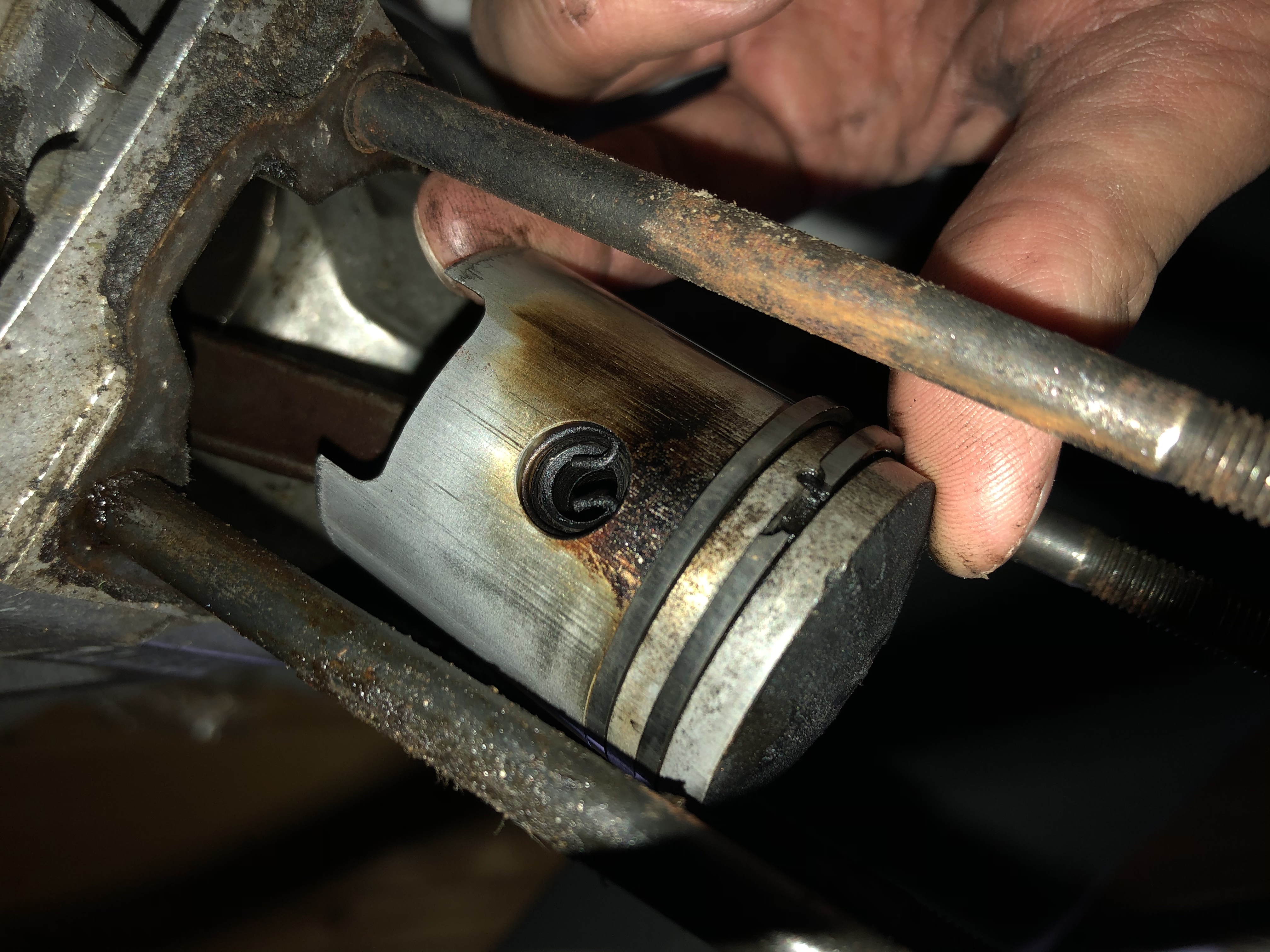 Aan de positie van de zuigerveerslotjes zie ik dat de zuiger goed gemonteert zit.