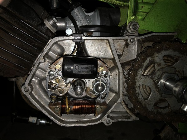 Advies opgevolgd. Alle pakkingen vervangen. De krukaskeerringen ook vervangen. Nieuwe zuiger ook (met de pijl aan de grondzijde. Dus aan de zijde van de uitlaat.Dat lager achter het tandwiel gaat zelden kapot, keerring kun je makkelijk later vervangen als dat nodig is.