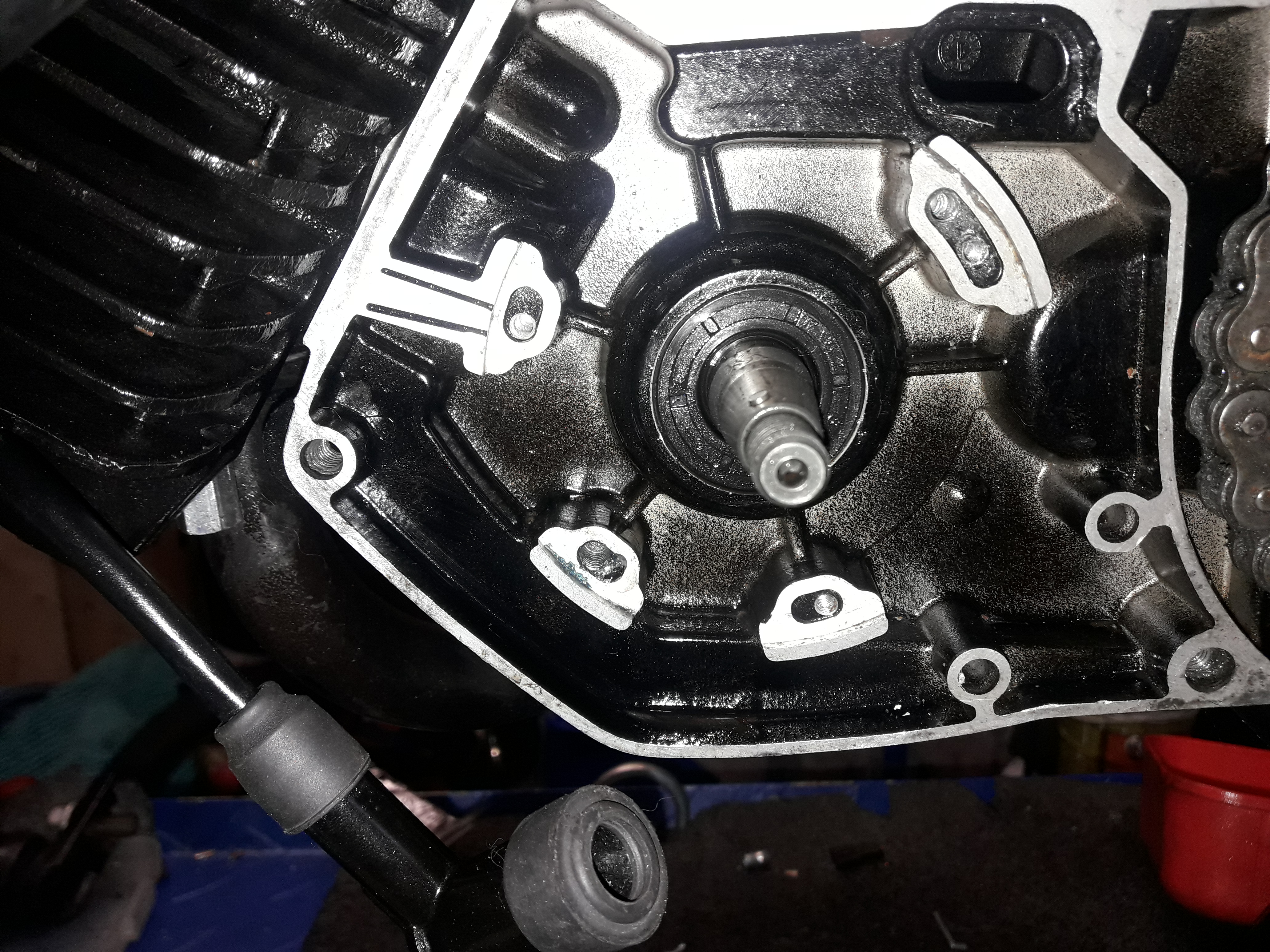 Bougie haal ik er uit omdat ik een hoge compressie heb en dan draai ik de moer van het vliegwiel eraf.